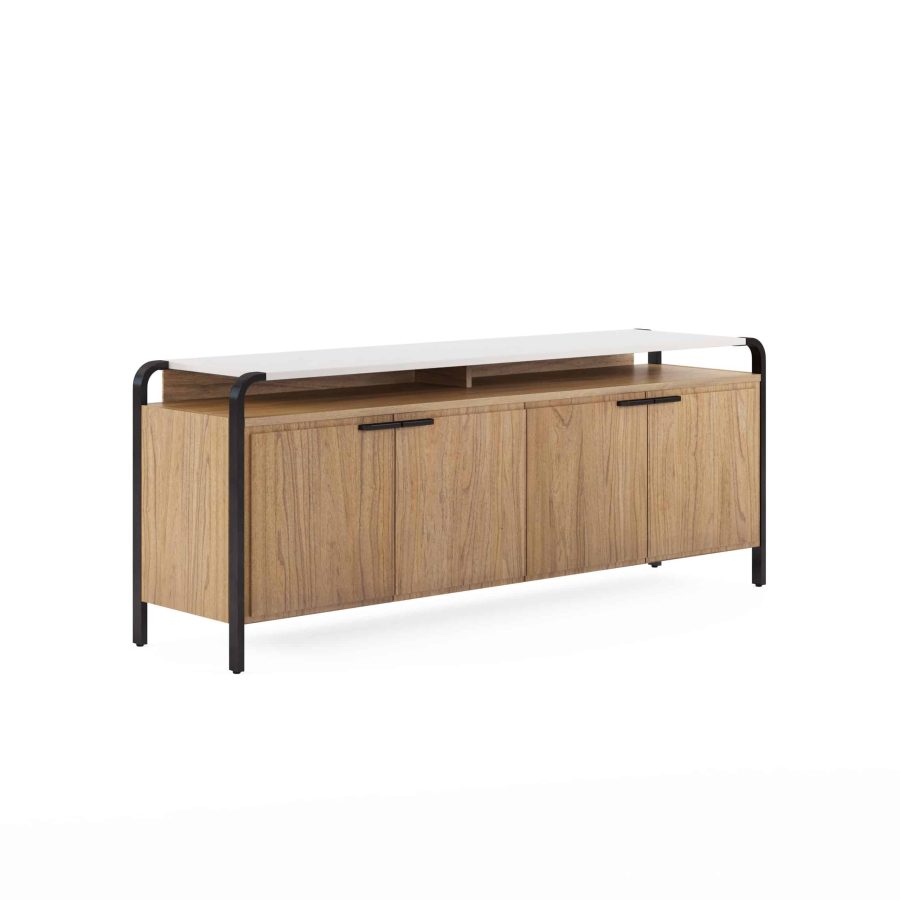 Product Description: ART Furniture 323423-3351 Portico Entertainment Console - The art of entertainment has never felt so effortless. This attractive two-tone console features a sleek white top and lower compartment featuring natural wood grain finished in warm acacia brown. Four doors reveal adjustable shelves, with convenient wire management cutouts for electronic devices and plenty of storage for all your living room entertainment essentials.