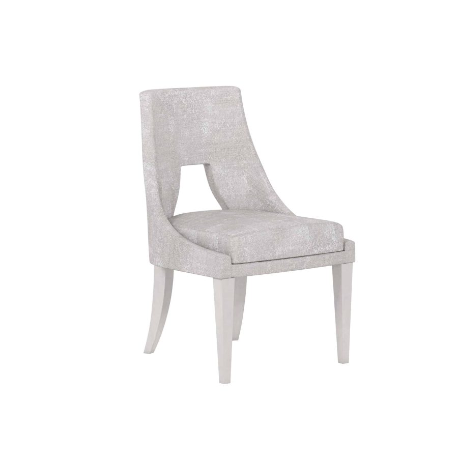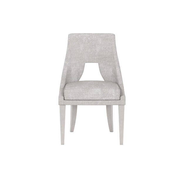 Product Description: ART Furniture 325200-2249 Mezzanine Side Chair - Elegant curves are dressed to impress in finely tailored pewter chenille. This contemporary dining chair evokes the feeling of a couture ensemble, featuring gracefully rounded sides with a fashion-inspired cutout in the back.