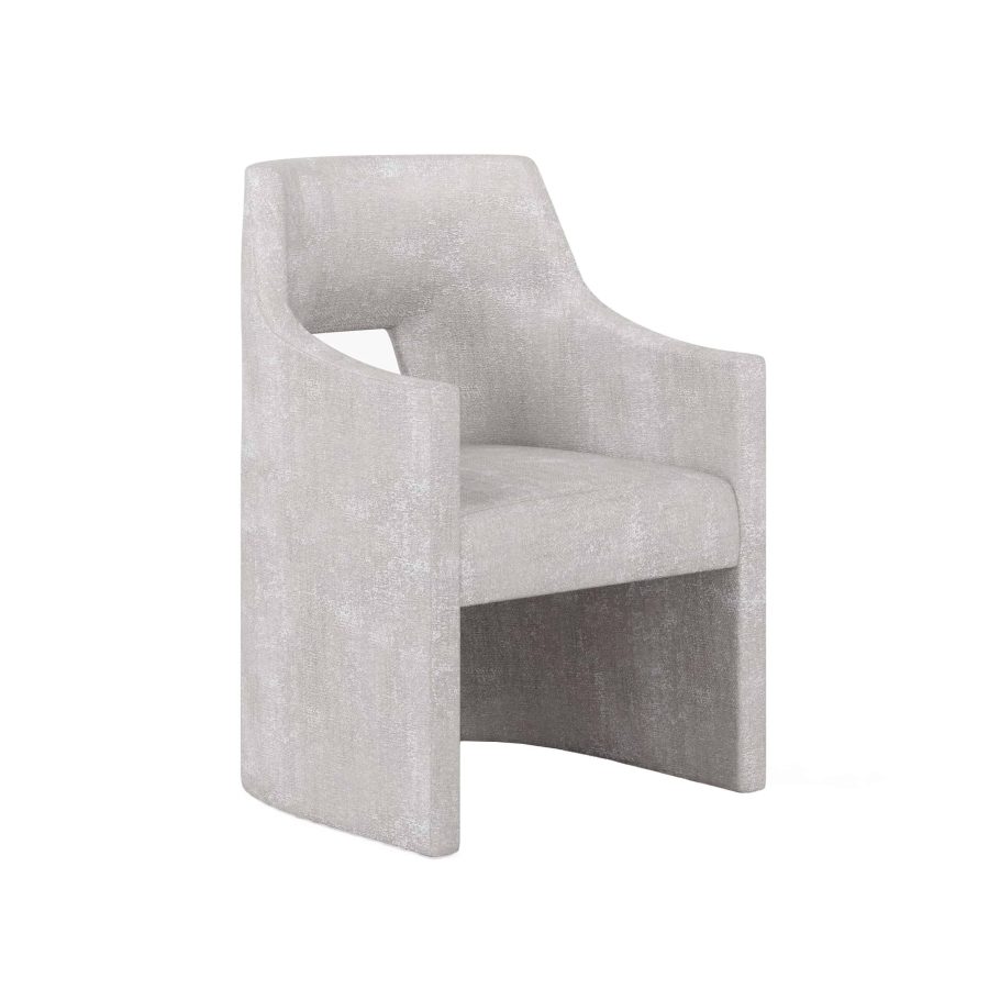 Product Description: ART Furniture 325201-2249 Mezzanine Host Chair - Go bold in the dining room. This striking host chair features a barrel-style frame, fully upholstered in pewter chenille that blends contemporary chic with soft transitional appeal.