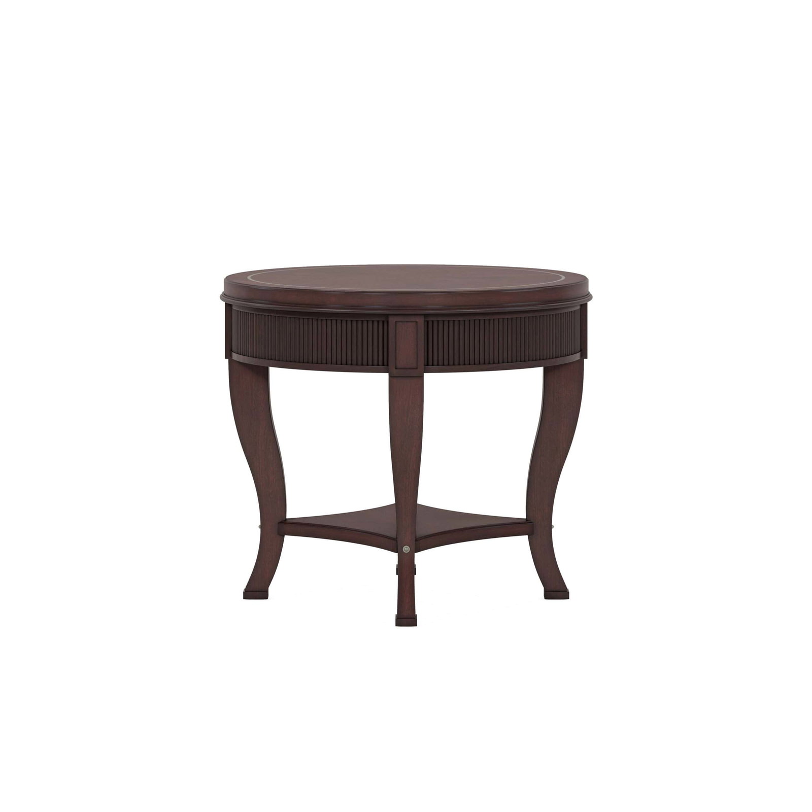 Product Description: ART Furniture 328303-1730 Revival Round End Table - The Revival End Table is a testament to timeless elegance refined detailing. Featuring a rich mahogany finish that creates a luxurious ambiance in your living space, this table is crafted from premium rubberwood and swirl mahogany veneer. The round top is highlighted by a contrasting satin wood inlay and a reeded apron that adds texture and sophistication to the design.