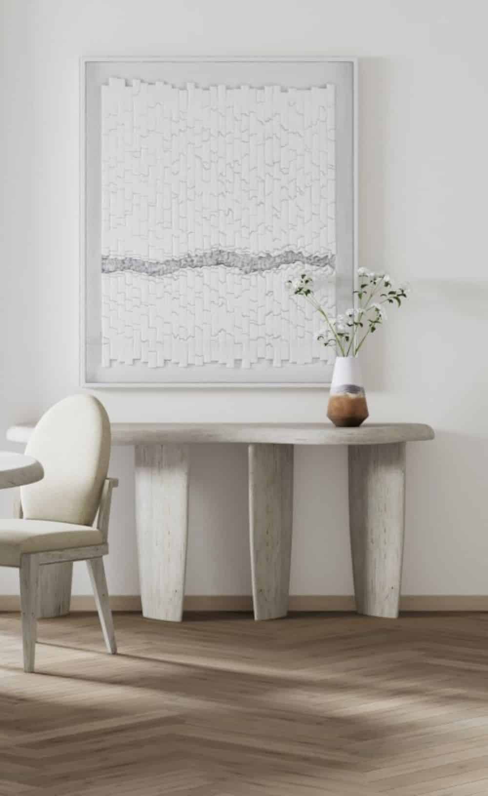 Evoking an open air and near the sea allure, Ashlar blends Coquina textures and silky-smooth painted surfaces into organic silhouettes. Its neutral color palette and sanded metal accents are reminiscent of a stroll on the sparkling sands of the Keys. Amorphic shapes mix with rich textures to stir a sensory experience that satisfies any space with a relaxing and calming ambiance.