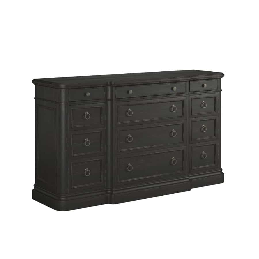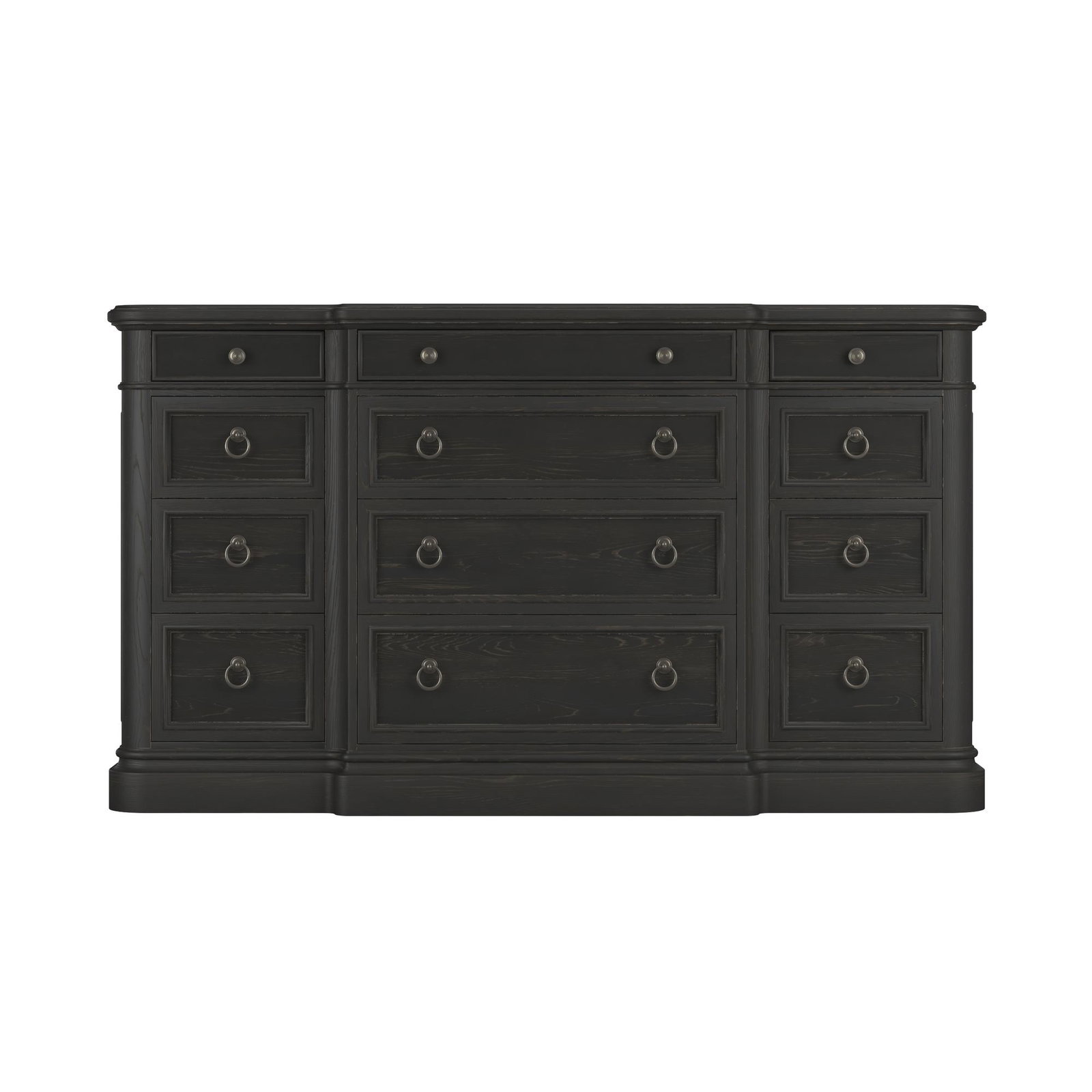 Product Description: ART Furniture 334131-2659 Atrium 12 Drawer Dresser - Classical style meets practical storage in the Atrium Dresser, featuring twelve ample drawers with lower drawers lined in aromatic cedar, guaranteed to hold four seasons' worth of wardrobe options. Paised panels and inset columns highlight a deep blackened finish and oil rubbed bronze hardware in a balanced style that is equal parts historic and contemporary.