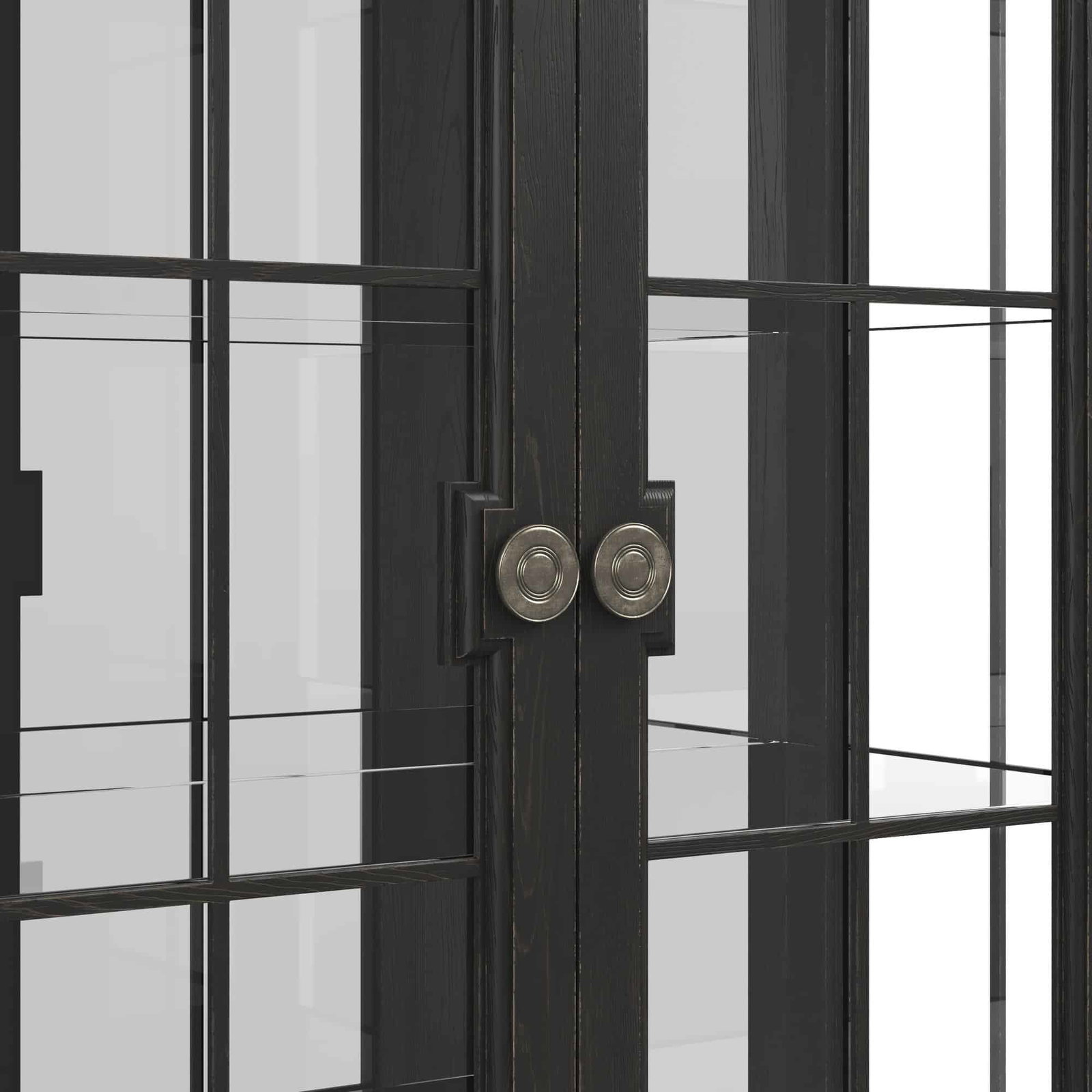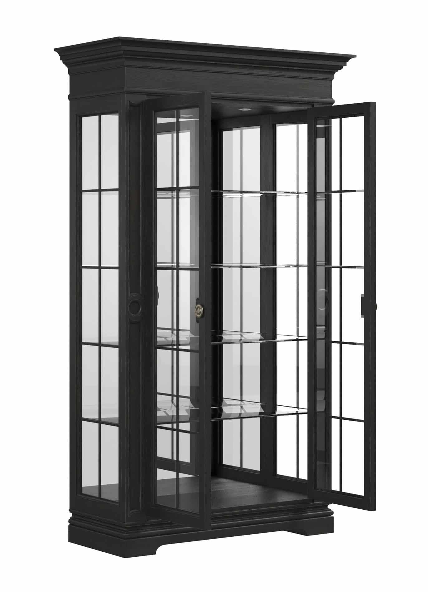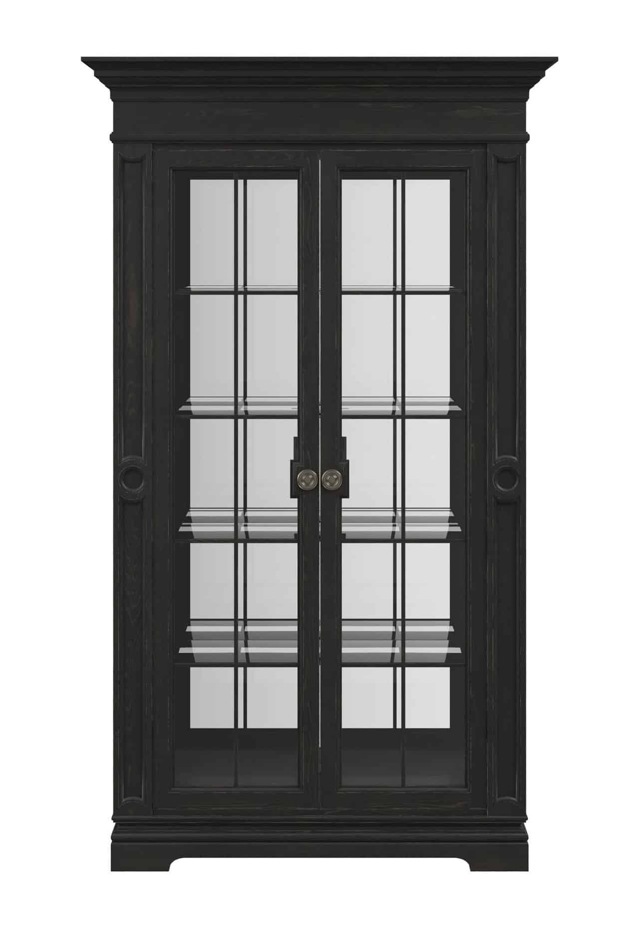 Product Description: ART Furniture 334240-2659 Atrium 2 Door Glass Cabinet - Like the perfect frame complements a beautiful piece of art, the Atrium China Cabinet is a stunning showcase for your fine china and display pieces. The interior is softly lit with interior touch-operated LED lighting, to gently bathe items placed on the adjustable glass shelves in just a hint of light. The contrast of blackened sable finished doors are accented with ornate oil rubbed bronze handles, and it is crowned with an elegant crown molding that makes it both stately and timeless.