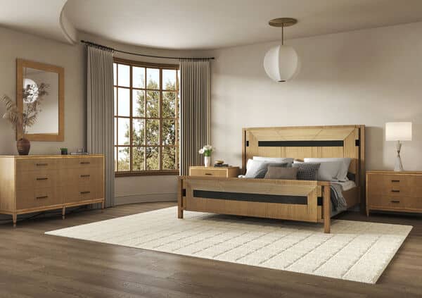 A Celebration of crisp lines and beveled edges, this collection offers over 20 designs in figured maple veneer, complemented by fabric-wrapped, or organic jute cord accents. Perfect for metro, urban, or contemporary homes.