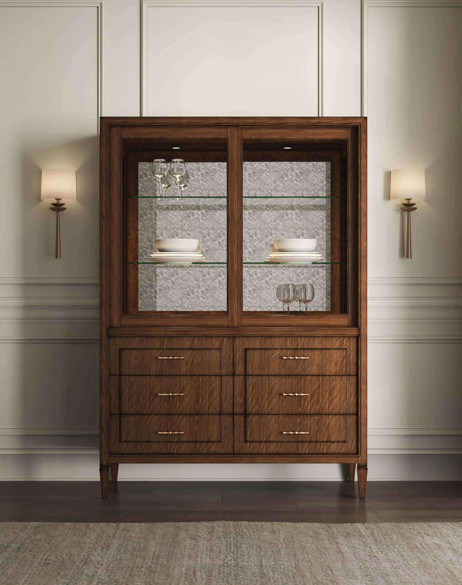 A reinvention of 19th-Century English classics infused with chinoiserie details. Collections features pieces finished in stunning clear quartered walnut veneer, mixed with selected items in Candy Apple Red, Black and Frosted Bronze bridging timeless elegance with modern sophistication