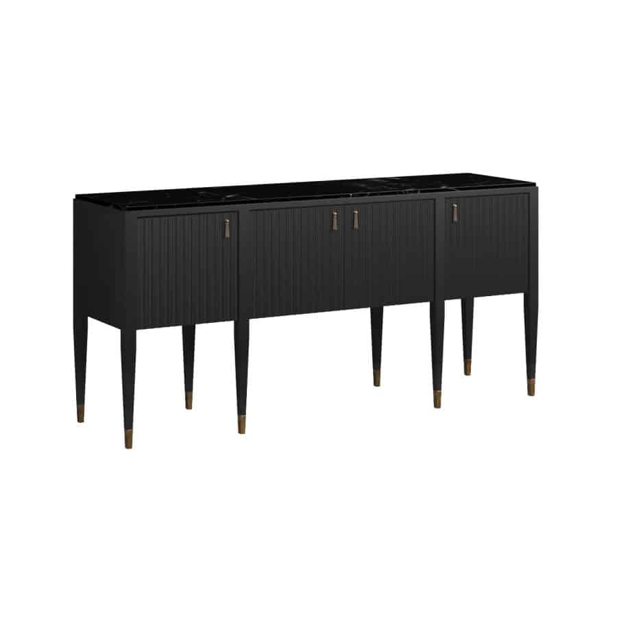 Product Description: ART Furniture 336251-1818 Eave Sideboard with Stone Top - Ink - New Traditional Sideboard in Ebony Black (Ink) Finish with four pleated front doors and stylized tassel pulls in Burnished Gold Finish with Black Mariquine Marble Top.