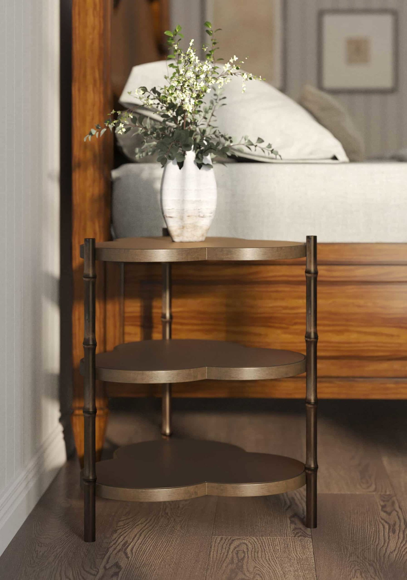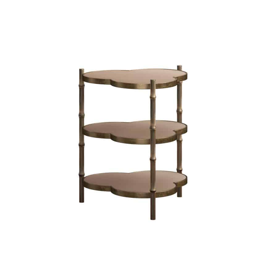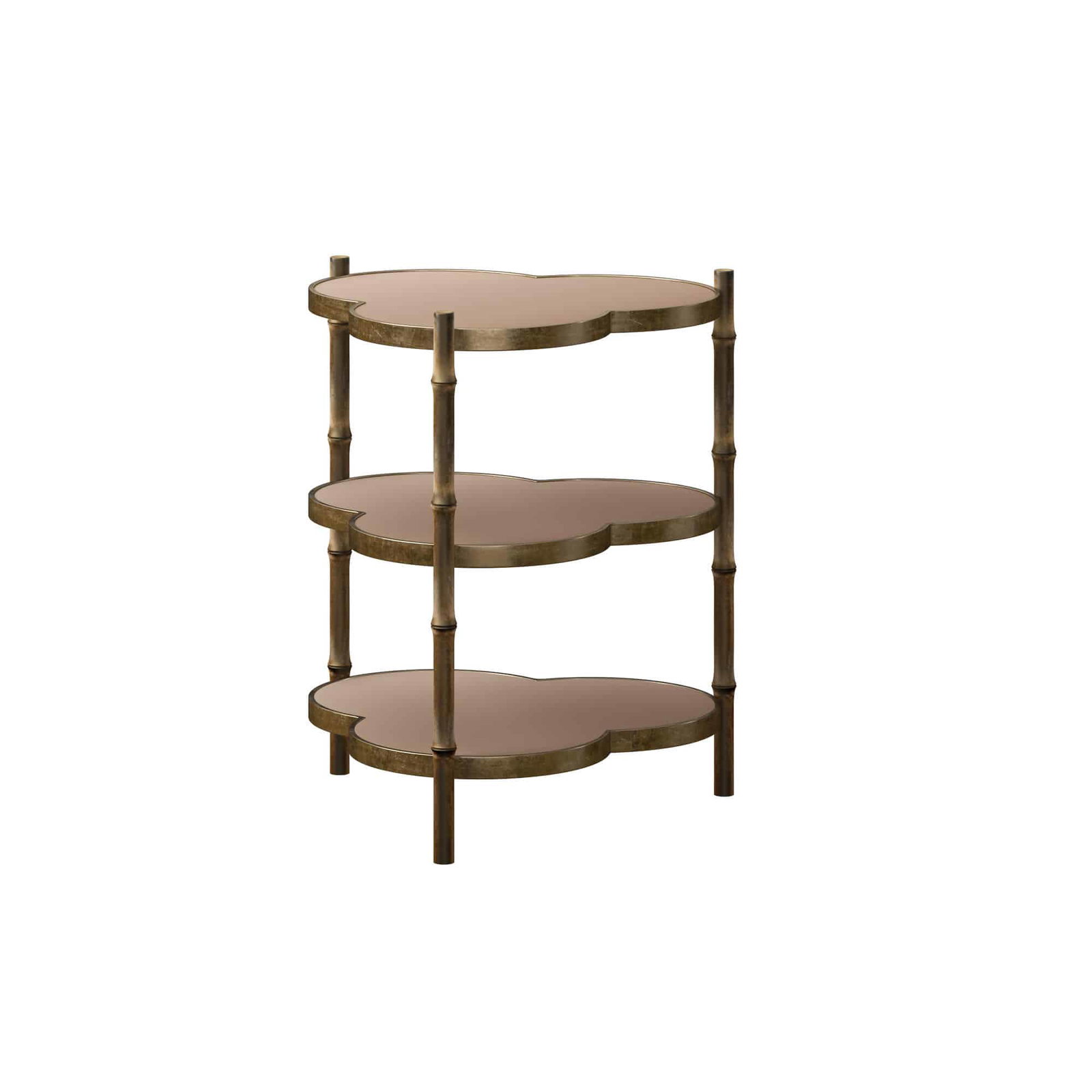Product Description: ART Furniture 336368-1245 Eave Accent Table - New Traditional Accent Table with Trefoil three trefoil shaped levels, each banded in Burnished Gold Finished Metal and inset with Bronze Frosted Glass