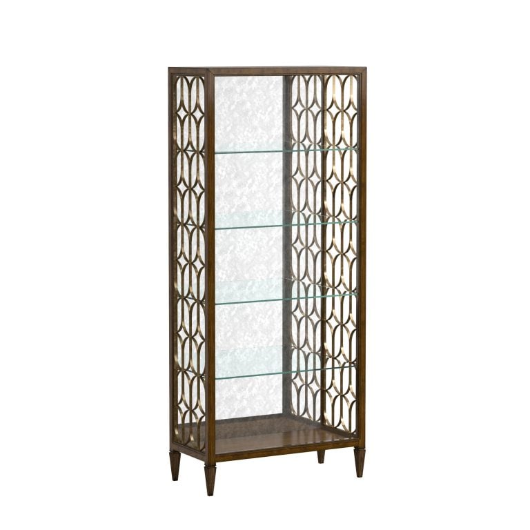 Product Description: ART Furniture 336401-1860 Eave Etagere Bookcase - New Traditional Etagere with Open Geometric metal framewoork in Burnished Gold Finish on the sides with Mirrored Back Panel