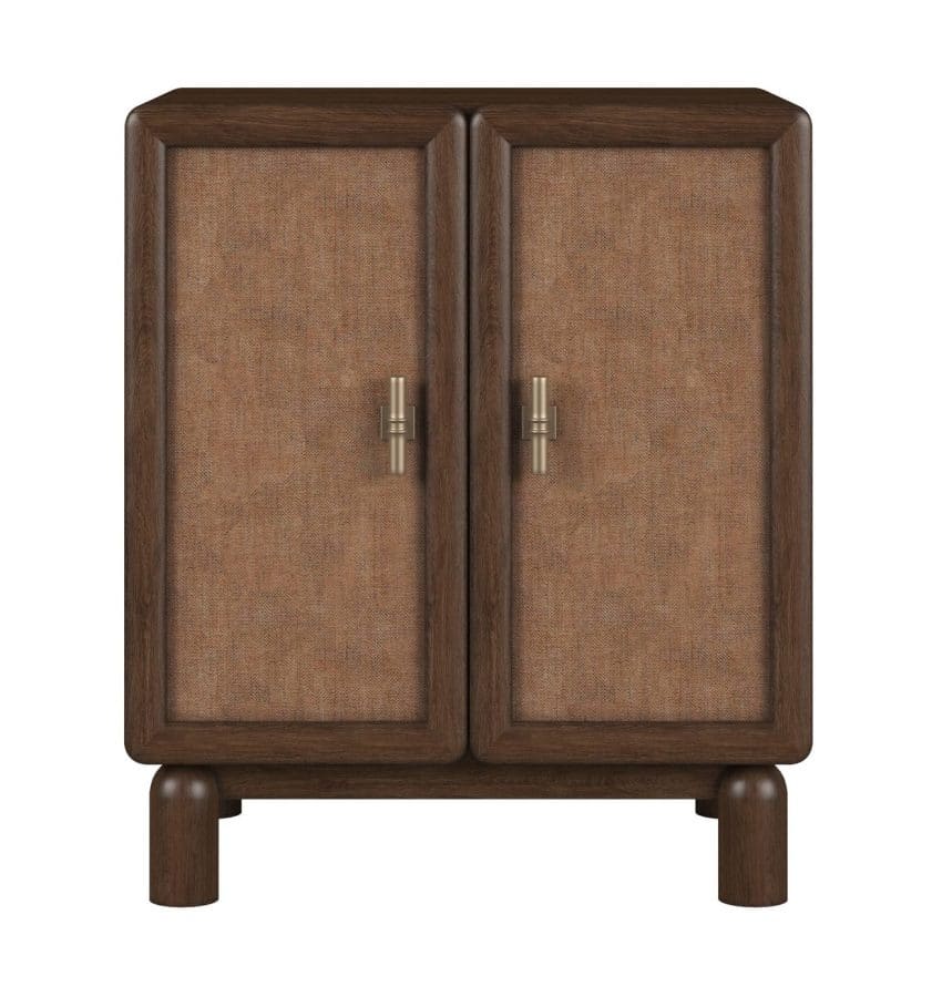 Product Description: ART Furniture 337142-1960 Verge Door Nightstand - Discover the unique charm of this cabinet nightstand and let its intriguing blend of textures enhance your bedside. The rich, dark wood frame, finished in a handcrafted walnut hue, is softened by subtly rounded edges framing two textured woven panels. Elegant metal handles, with a touch of antique brass, add a sophisticated detail. The cabinet doors open to reveal ample storage, keeping your essentials neatly tucked away. Whether placed beside your bed or used as an accent piece, this nightstand is sure to reflect well on its surroundings, offering both style and a touch of artisanal appeal.