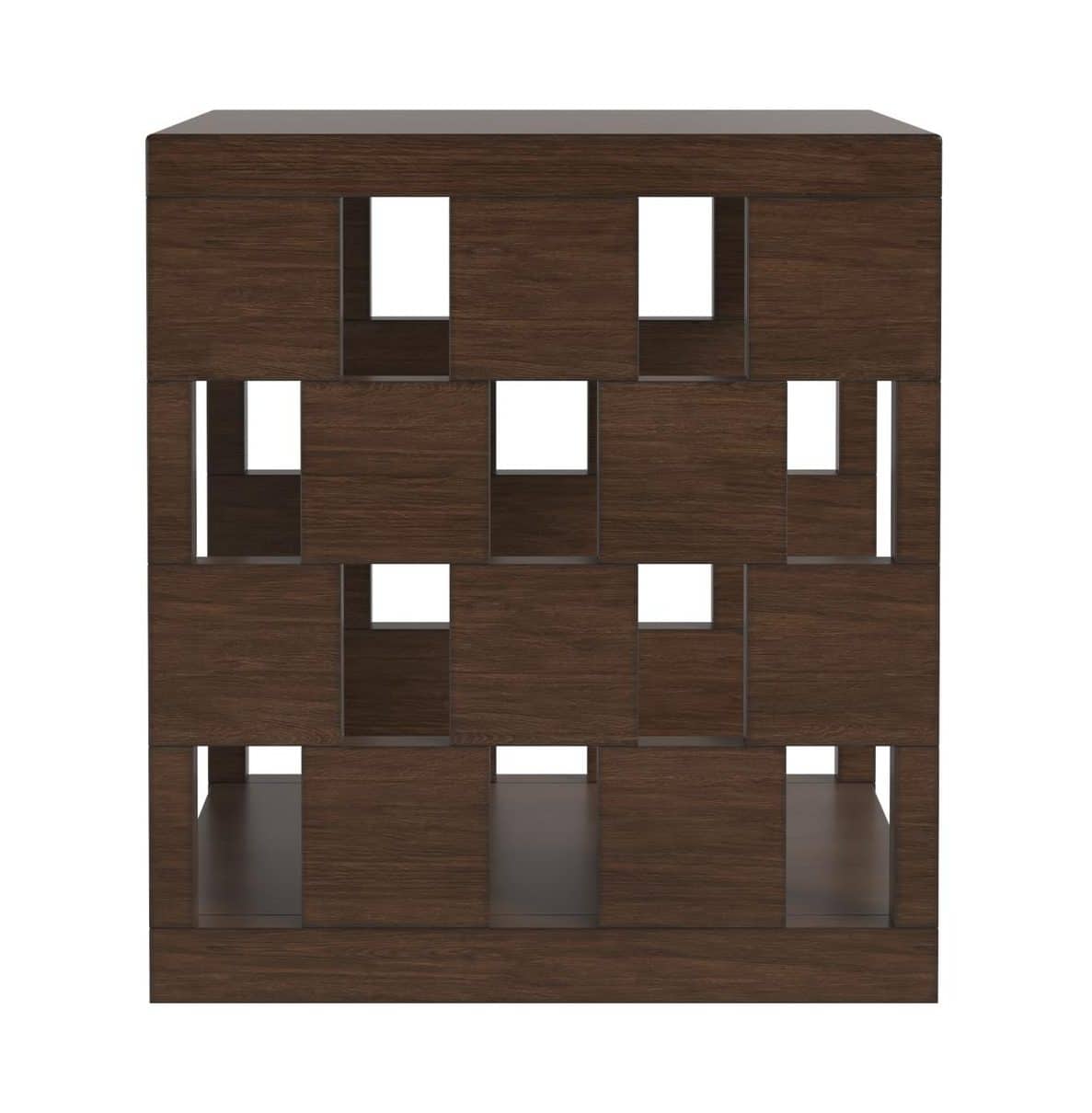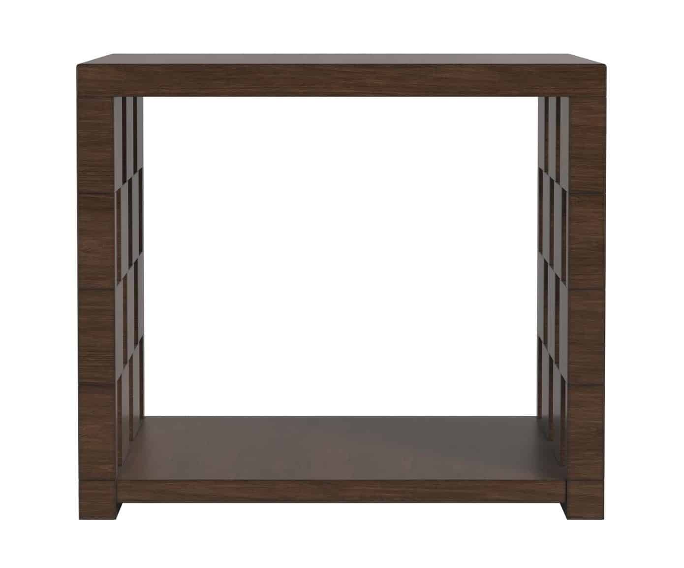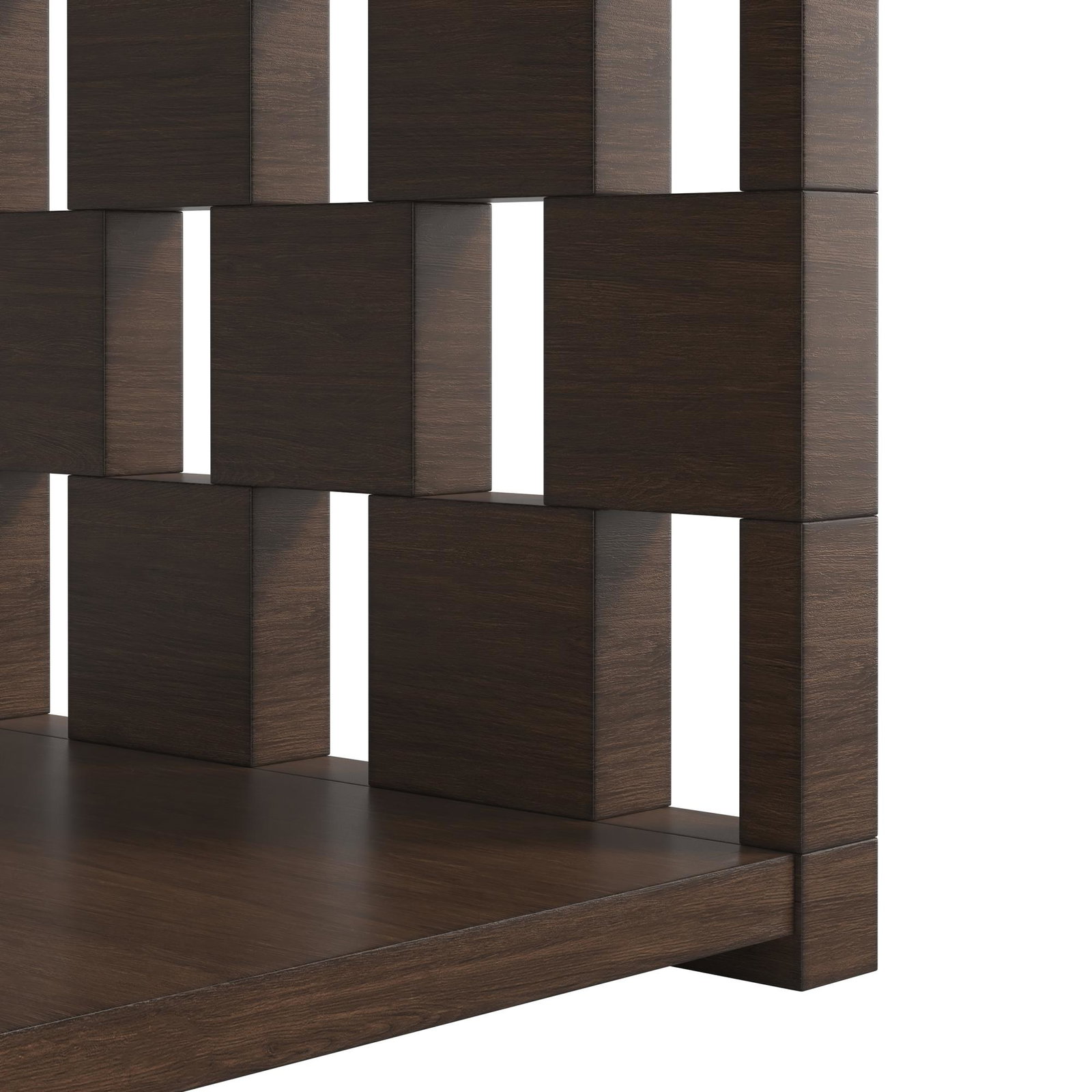 Product Description: ART Furniture 337303-1960 Verge End Table - Accent your living space with this striking end table and let its intriguing geometric design enhance your décor. The unique, handcrafted walnut finish is softened by the clean lines of the square tabletop. The open, geometric side panels, creating a captivating visual texture, add a touch of modern artistry. The lower shelf provides practical storage or display space. The compact form and bold design offer both functionality and style, ensuring this end table complements its surroundings with its quiet drama. Whether used beside a sofa, armchair, or bed, this end table is sure to reflect well on its surroundings, offering both form and a touch of contemporary sophistication.