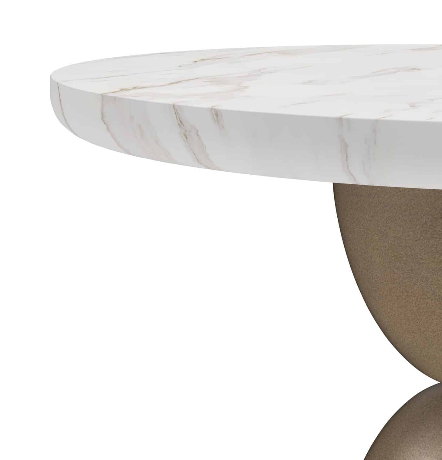 Product Description: ART Furniture 337389-1043 Verge Spot Table - Accent your space with the sculptural intrigue of this spot table and let its unique form enhance your décor. The smooth, polished marble tabletop, with its unique veining, is softened by the gentle curve of its round form. The sculptural metal base, composed of stacked, rounded elements finished in a warm, metallic tone, adds a touch of contemporary artistry. The compact form and balanced proportions offer both functionality and style, ensuring this spot table complements its surroundings with its quiet drama. Whether used beside a sofa, armchair, or bed, this spot table is sure to reflect well on its surroundings, offering both form and a touch of modern sophistication.