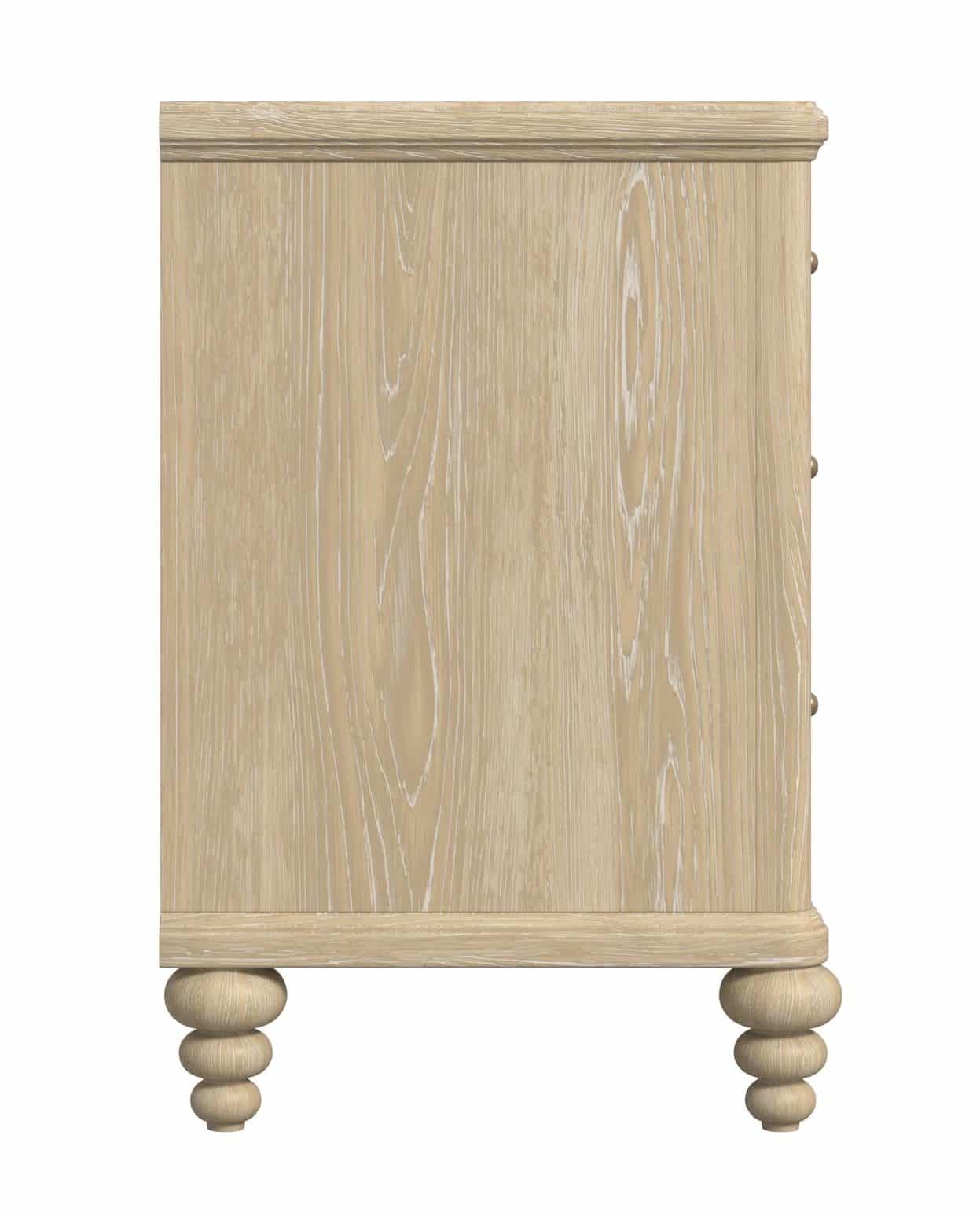 Product Description: ART Furniture 339141-2325 Haven Nightstand Sundrenched Oak - Bring a touch of elegance to your bedside with the Haven Nightstand that reimagines classic bedside storage with delightful details inspired by the warmth of a countryside retreat. The gently fluted drawer fronts, showcasing the natural beauty of the sun oak finish, create a sense of textural interest reminiscent of hand-carved details found in vintage furniture. The soft, natural finish evokes the timeless charm of aged wood, while the delicate scalloped apron and turned feet add a touch of feminine whimsy. With its three drawers providing ample storage, this nightstand seamlessly blends functionality with the lighthearted, inviting atmosphere that defines the Haven collection. Perfect for keeping essentials close at hand while adding a touch of enchanting style to your bedroom.