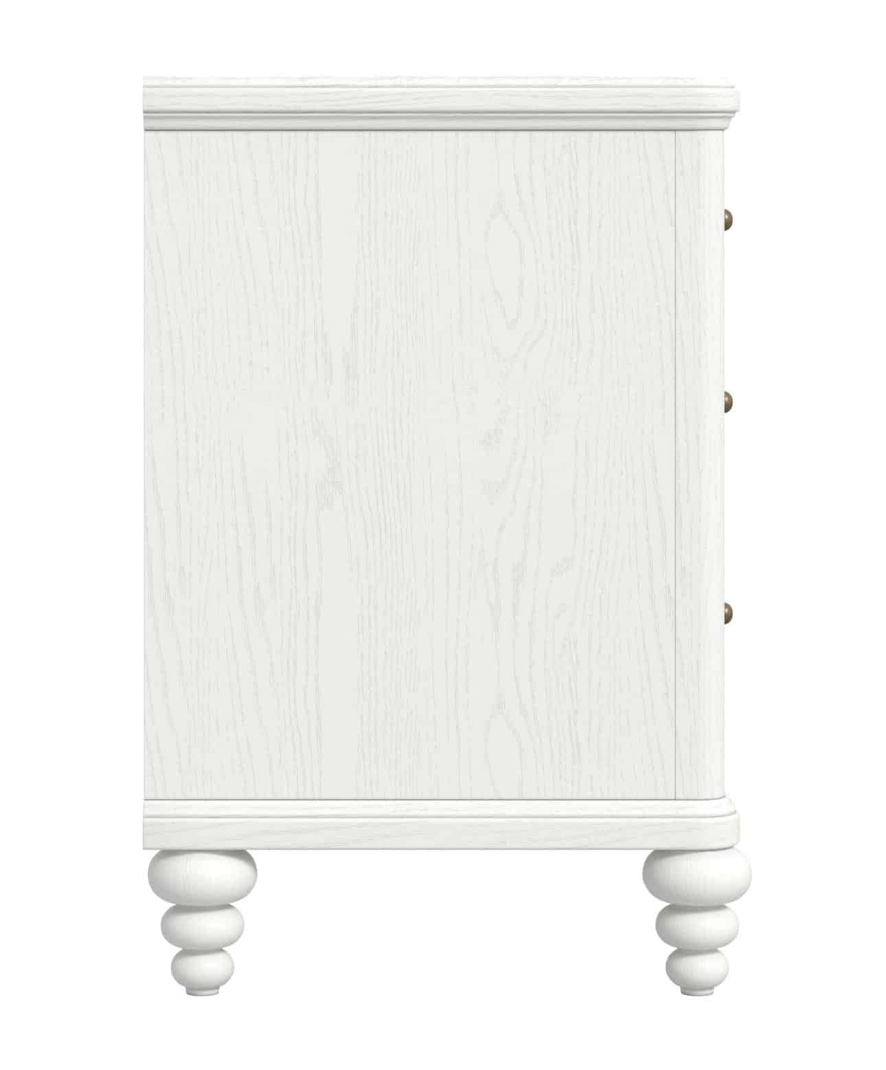 Product Description: ART Furniture 339141-2367 Haven Nightstand Warm White - Add a touch of refined whimsy to your bedside with the Haven Nightstand that reimagines classic bedside storage with delightful details inspired by vintage finds. The gently fluted drawer fronts create a sense of textural interest, reminiscent of hand-carved details found in antique furniture. The soft, white finish adds a fresh, airy feel, while the delicate scalloped apron and turned feet echo the timeless charm of a countryside cottage. With its three drawers providing ample storage, this nightstand seamlessly blends functionality with the lighthearted elegance that defines the Haven collection. Perfect for keeping essentials close at hand while adding a touch of enchanting style to your bedroom.