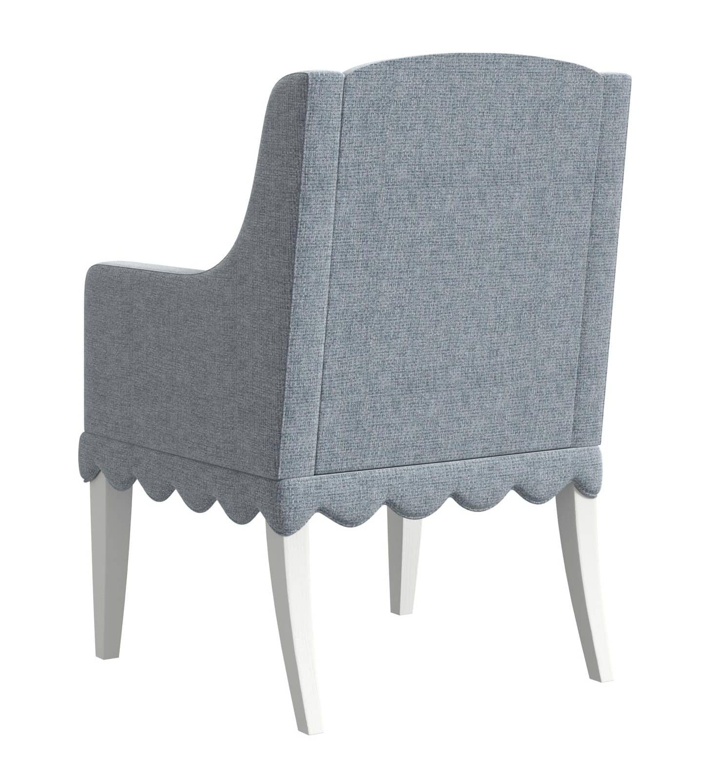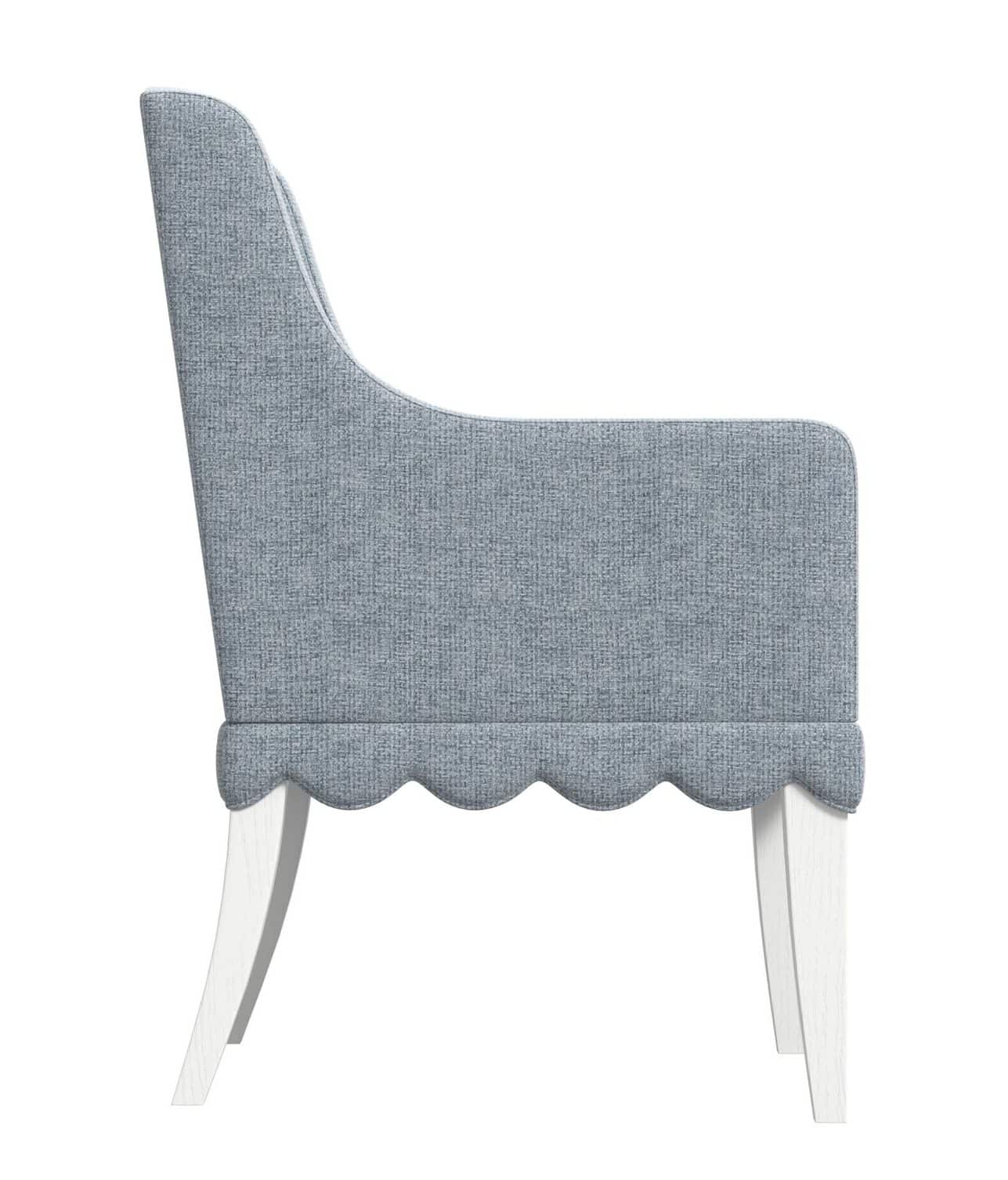 Product Description: ART Furniture 339201-2367 Haven UPH Hostess Chair - Add a touch of cozy elegance and vintage charm to your living space with the Haven Upholstered Armchair. This piece captures the essence of a treasured antique with its delicate scalloped detailing along the base and the soft, inviting texture of the light blue upholstery. The gently curved arms and clean lines evoke the feeling of a hand-crafted piece, reminiscent of a cozy cottage retreat. The subtle blue hue adds a touch of serene sophistication, while the comfortable upholstered seat and armrests ensure both style and relaxation. Create a welcoming and inviting atmosphere in your home with this delightful armchair, a perfect embodiment of the Haven collection's blend of classic charm and feminine whimsy.