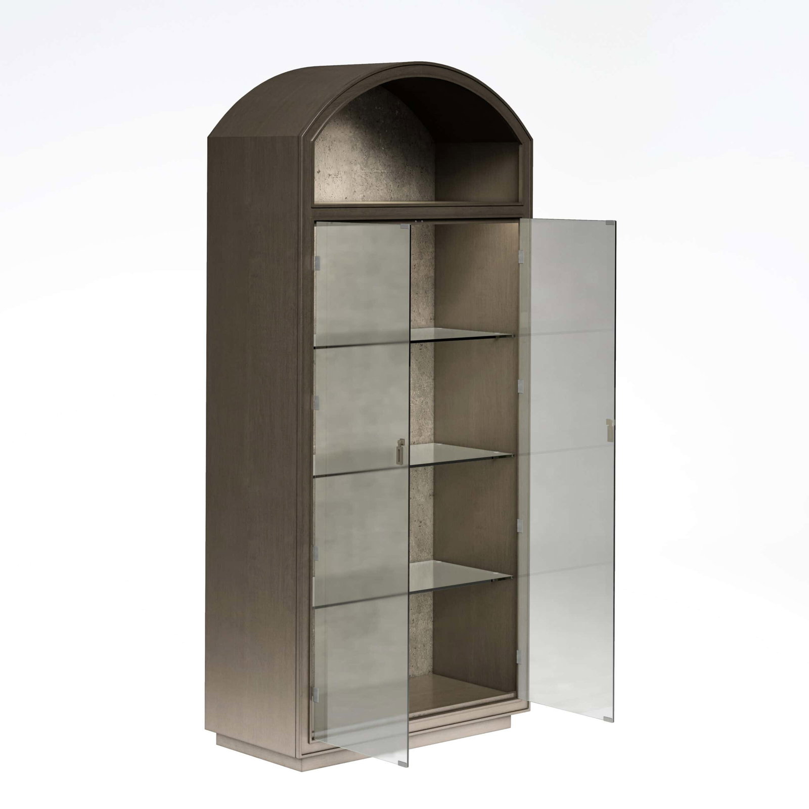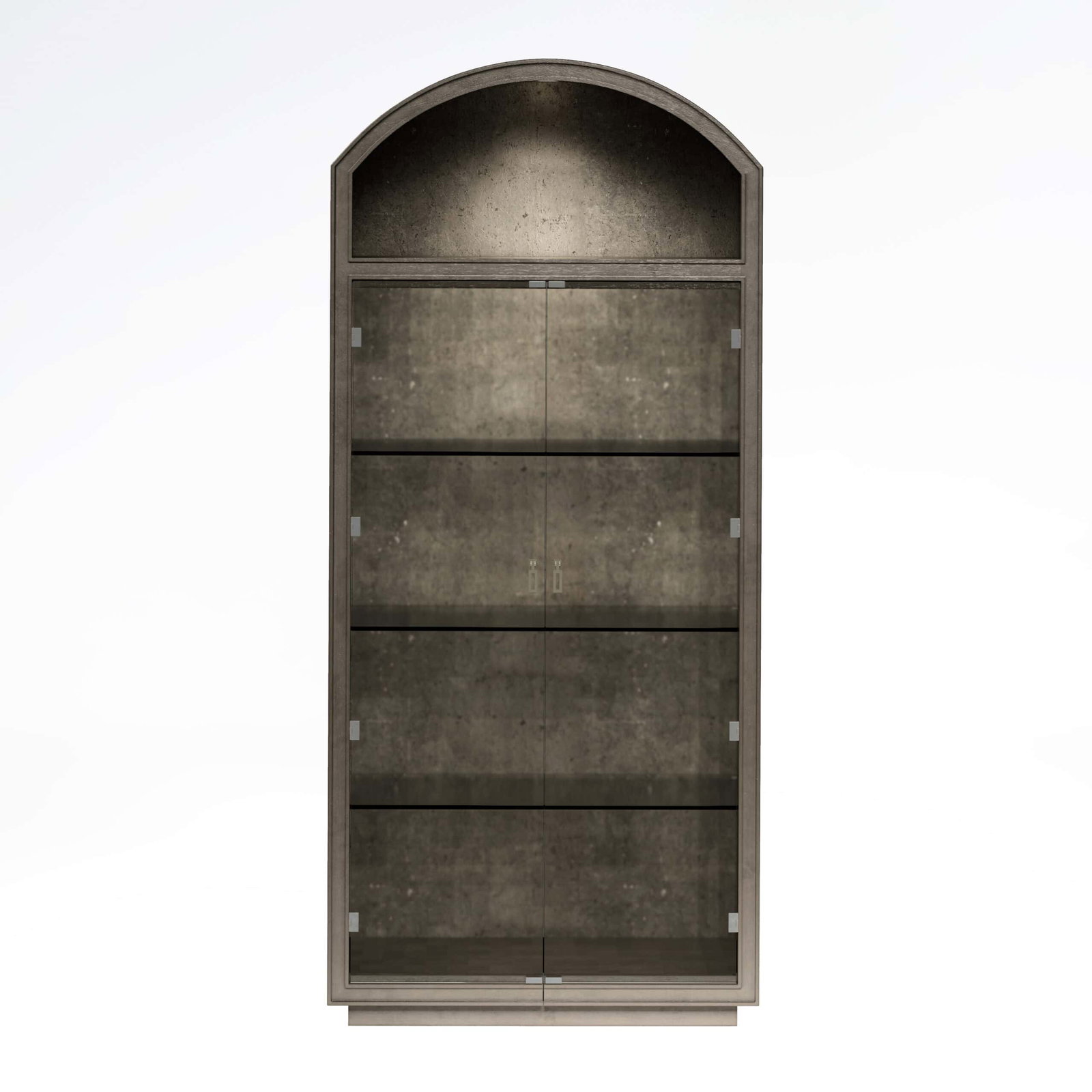 Product Description: ART Furniture 349240-2743 Cove Display Cabinet - Two (2) glass doors. 3-way touch dimmer light, controled on top right door hinge. One (1) stationary upper shelf. Three (3) adjustable glass shevles behind doors. Pewter finished metal hardware.