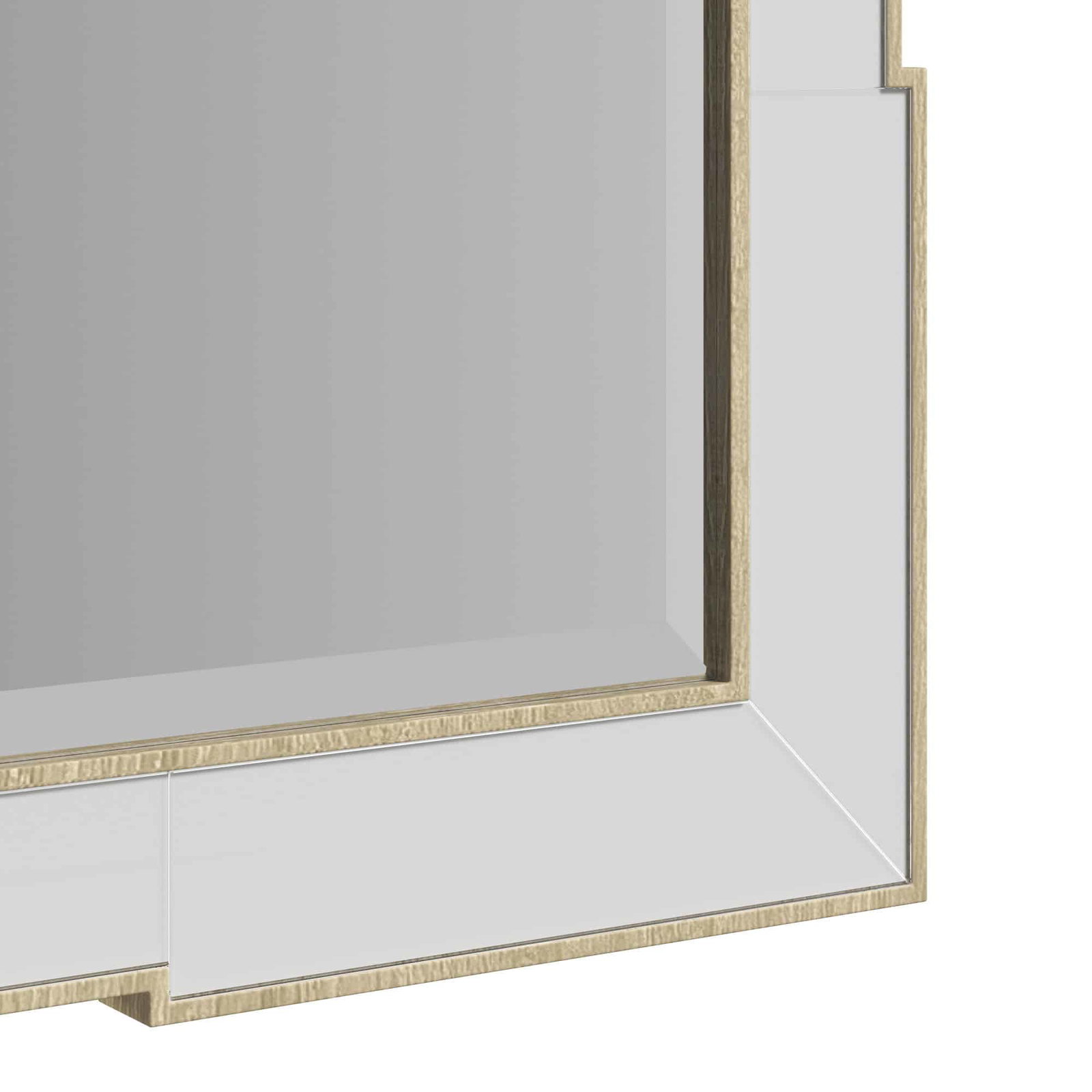 Product Description: ART Furniture 436121-1825 Eave Accent Mirror - Enhance your interior décor with the refined elegance of the Eave II Rectangular Mirror. This piece, from the distinguished Eave II collection, presents a modern twist on classic design. The mirror features a striking frame with a unique, stepped geometric pattern, adding a touch of architectural interest and contemporary flair. The frame combines a smooth, light-toned outer finish with a delicate metallic inner border, creating a subtle contrast that catches the light and adds depth. The clean, rectangular shape of the mirror makes it a versatile addition to any room, reflecting light and creating a sense of spaciousness. Whether hung as a statement piece in a living area or above a vanity in a bathroom, the Eave II Rectangular Mirror brings a sophisticated and modern touch to your home.