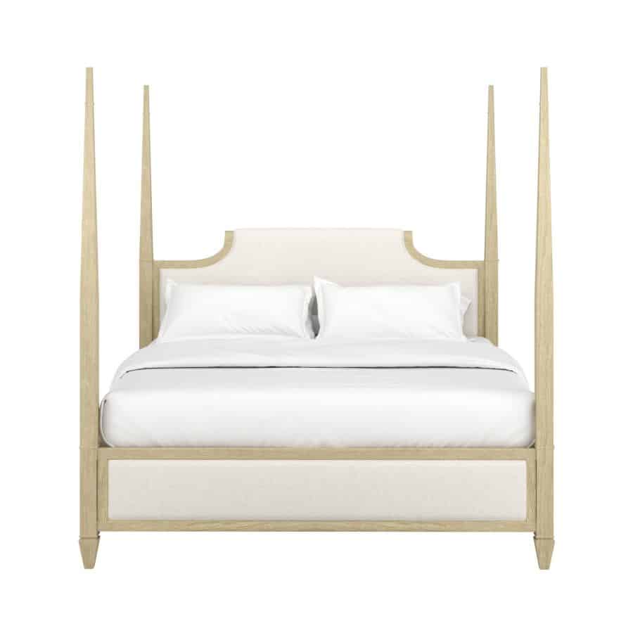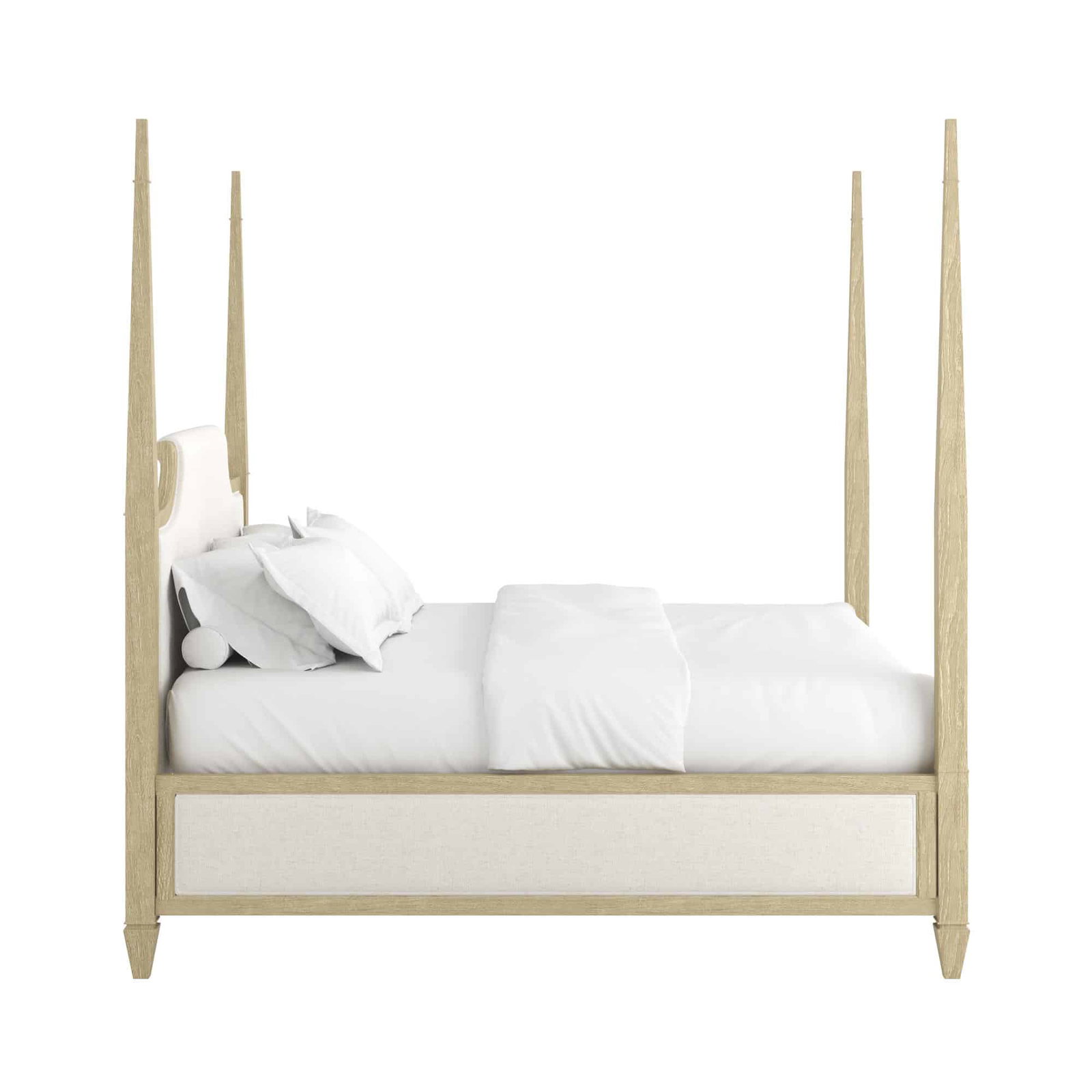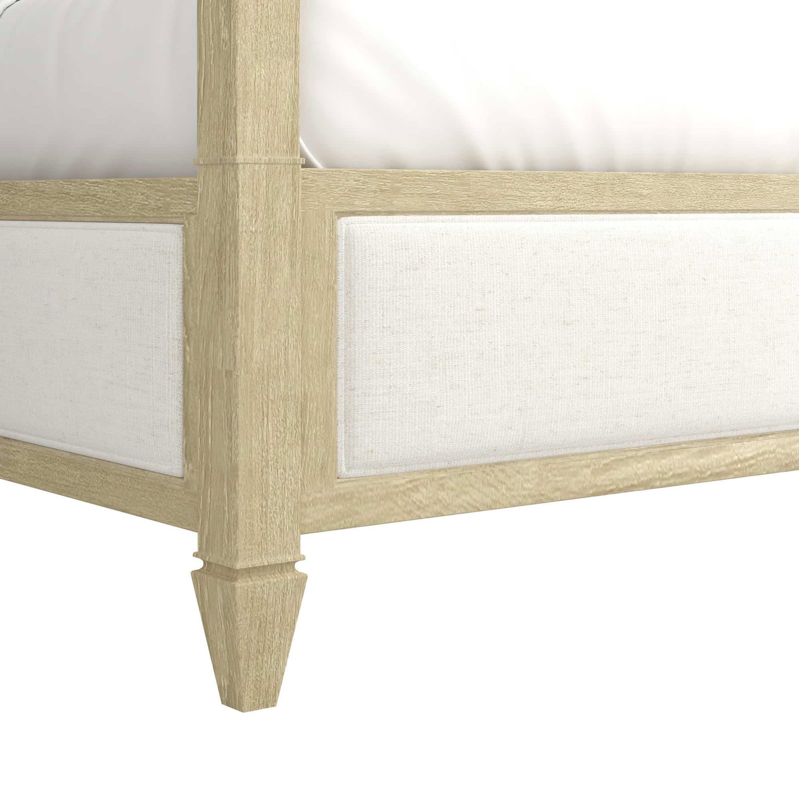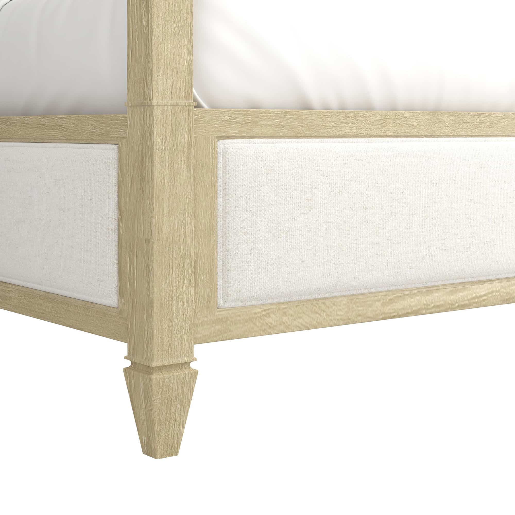 Product Description: ART Furniture 436125-1825 Eave Uph Queen Bed - Experience understated sophistication and serene elegance with the Eave II Upholstered Bed. This piece, part of the distinguished Eave II collection, brings a touch of refined simplicity to your personal sanctuary. The bed features a gently arched headboard, its soft, neutral upholstery creating a calming backdrop for your bedroom décor. The clean lines and subtle curves of the headboard are framed by a beautifully finished, light-toned wood, adding a touch of natural warmth and texture. The plush, fully upholstered frame and headboard ensure unparalleled comfort, inviting you to unwind and relax in luxurious style. The slender, elegantly tapered four-poster posts rise gracefully, adding a hint of traditional grandeur while maintaining a modern, minimalist aesthetic. The Eave II bed is designed to be a serene and stylish centerpiece, offering a perfect blend of comfort and timeless design.