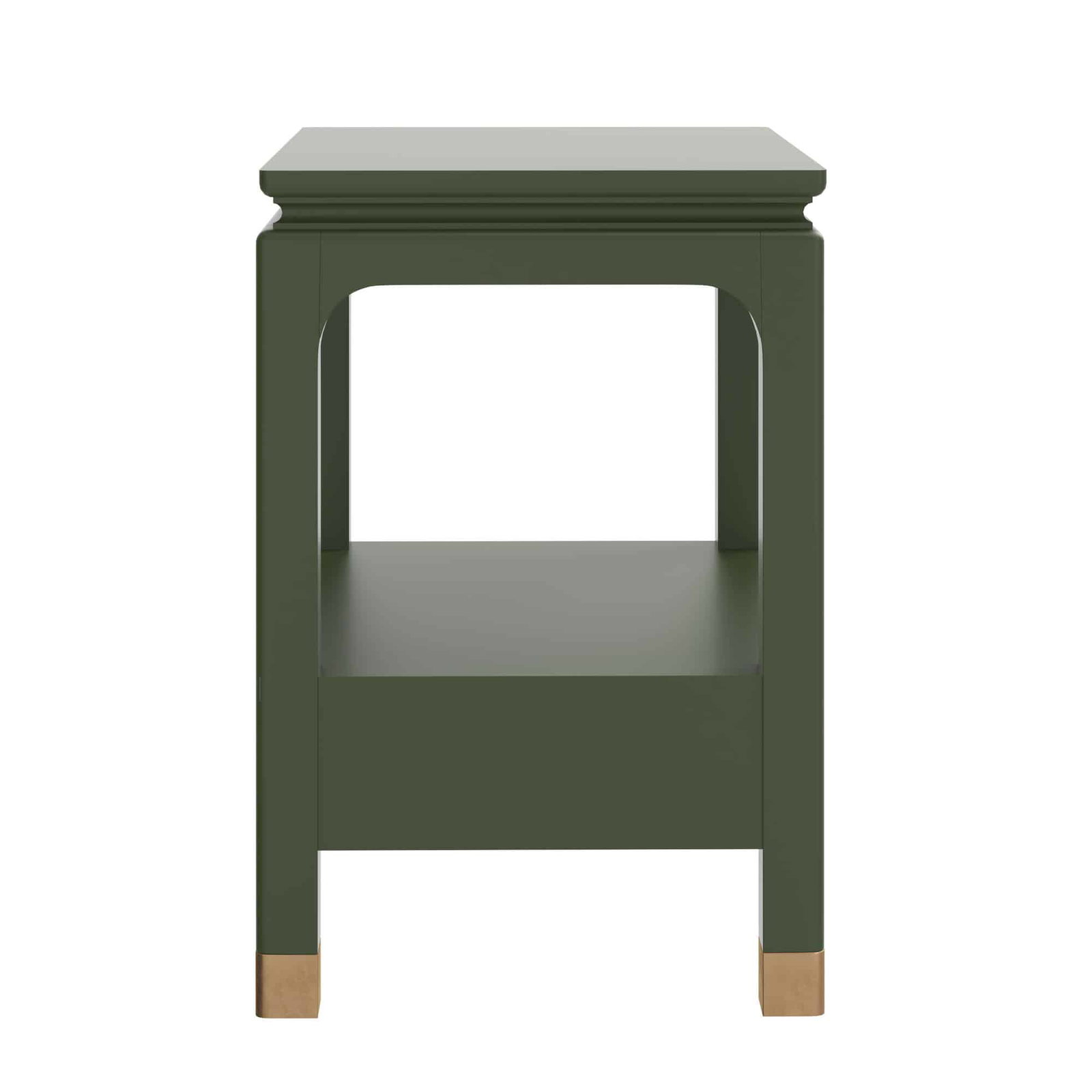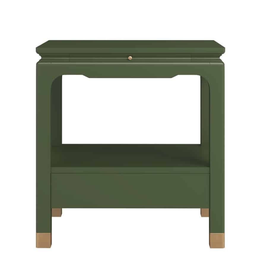 Product Description: ART Furniture 436140-1865 Eave Bedside Table Darkened Sage - Add a touch of distinctive style and functional elegance to your bedside with the Eave II Bedside Table. This piece, from the esteemed Eave II collection, showcases a unique, pagoda-inspired design with a rich, painted finish that brings a pop of sophisticated color to your space. The smooth, flat top provides ample space for your nighttime essentials, while the open shelf below offers additional storage or display options. The table's striking silhouette is defined by its gracefully curved, cutout sides, adding an architectural element and a sense of lightness. The single drawer, discreetly integrated into the base, provides concealed storage for personal items. The table rests on sturdy, block-style feet with a contrasting accent finish, adding a subtle touch of warmth and visual interest. The Eave II Bedside Table is designed to be a stylish and practical addition to your bedroom, blending unique design with everyday functionality.