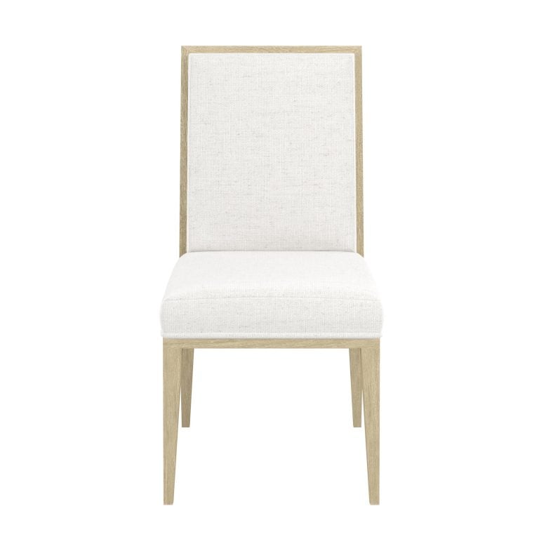 Product Description: ART Furniture 436206-1825 Eave Uph. Side Chair - Bring a sense of refined simplicity and comfort to your dining space with the Eave II Dining Side Chair. This piece, from the esteemed Eave II collection, combines clean lines with a soft, inviting aesthetic. The chair features a straight, high back, fully upholstered in a light, neutral fabric that offers both comfort and a versatile style. The chair's frame, crafted from a light, natural wood, showcases a sleek, minimalist design, emphasizing the beauty of its simple form. The gently tapered legs add a touch of elegance, while maintaining a contemporary feel. The Eave II Dining Side Chair is designed to provide both comfort and style, making it a perfect addition to any dining table, whether for casual meals or formal gatherings. Its clean design allows it to seamlessly integrate into a variety of interior styles.