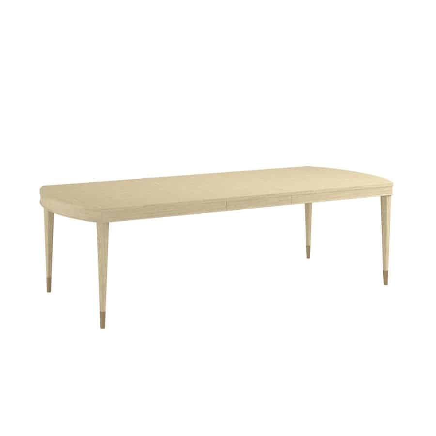 Product Description: ART Furniture 436222-1825 Eave Oval Dining Table - Create a versatile and elegant dining space with the Eave II Extendable Dining Table. This piece, from the esteemed Eave II collection, combines classic design with modern functionality. The table features a smooth, expansive oval top, crafted from a light, natural wood that exudes a sense of calm and refinement. The gently rounded edges of the tabletop soften the overall silhouette, creating a welcoming and intimate dining experience. The table's design is further enhanced by its slender, tapered legs, which add a touch of lightness and sophistication. The legs are finished with subtle metallic accents, providing a touch of contemporary elegance. Importantly, this table is designed with an extendable feature, allowing you to easily accommodate larger gatherings by extending the tabletop. This makes it perfect for both everyday meals and special occasions, seamlessly adapting to your needs. The Eave II Extendable Dining Table brings a touch of timeless elegance and practicality to your dining space.