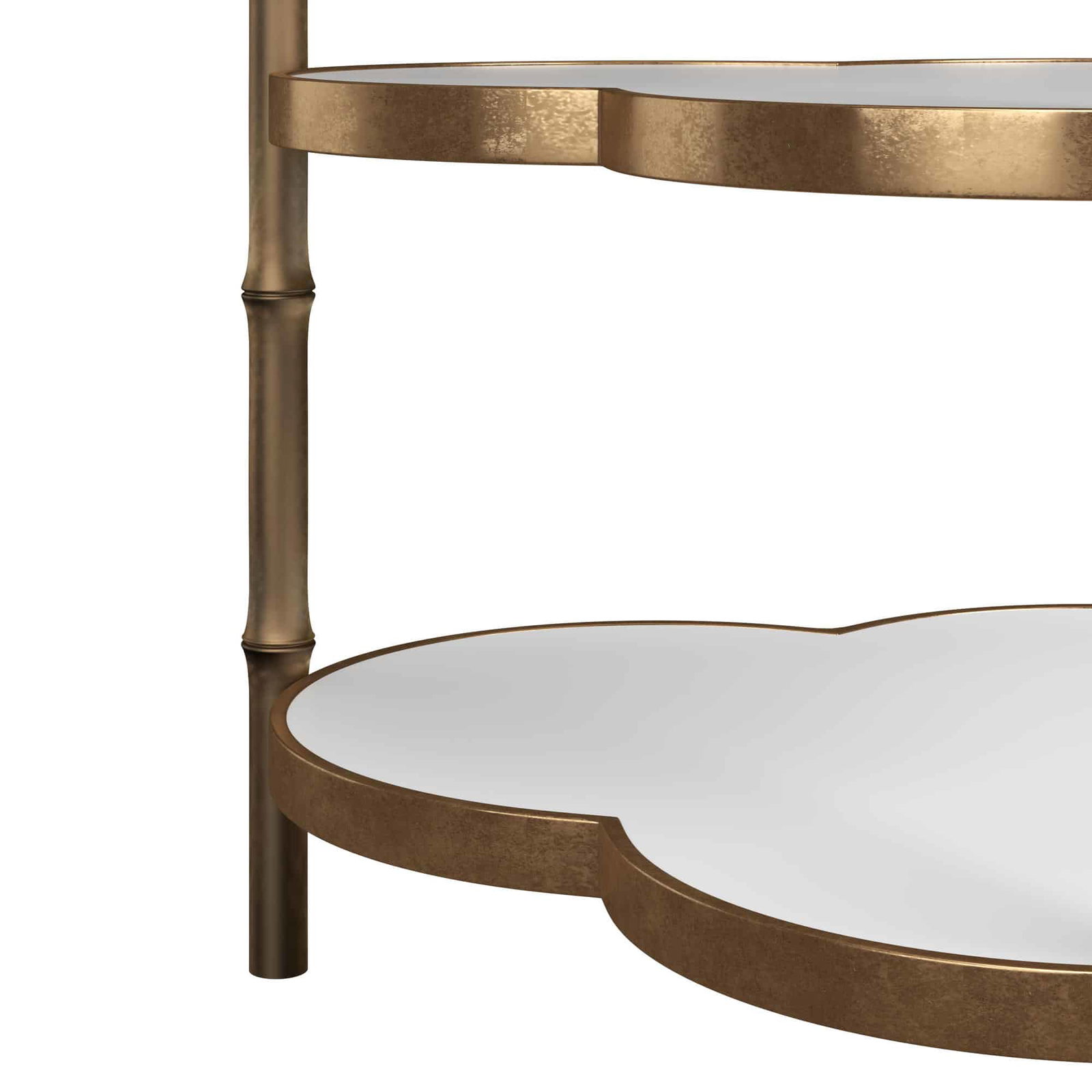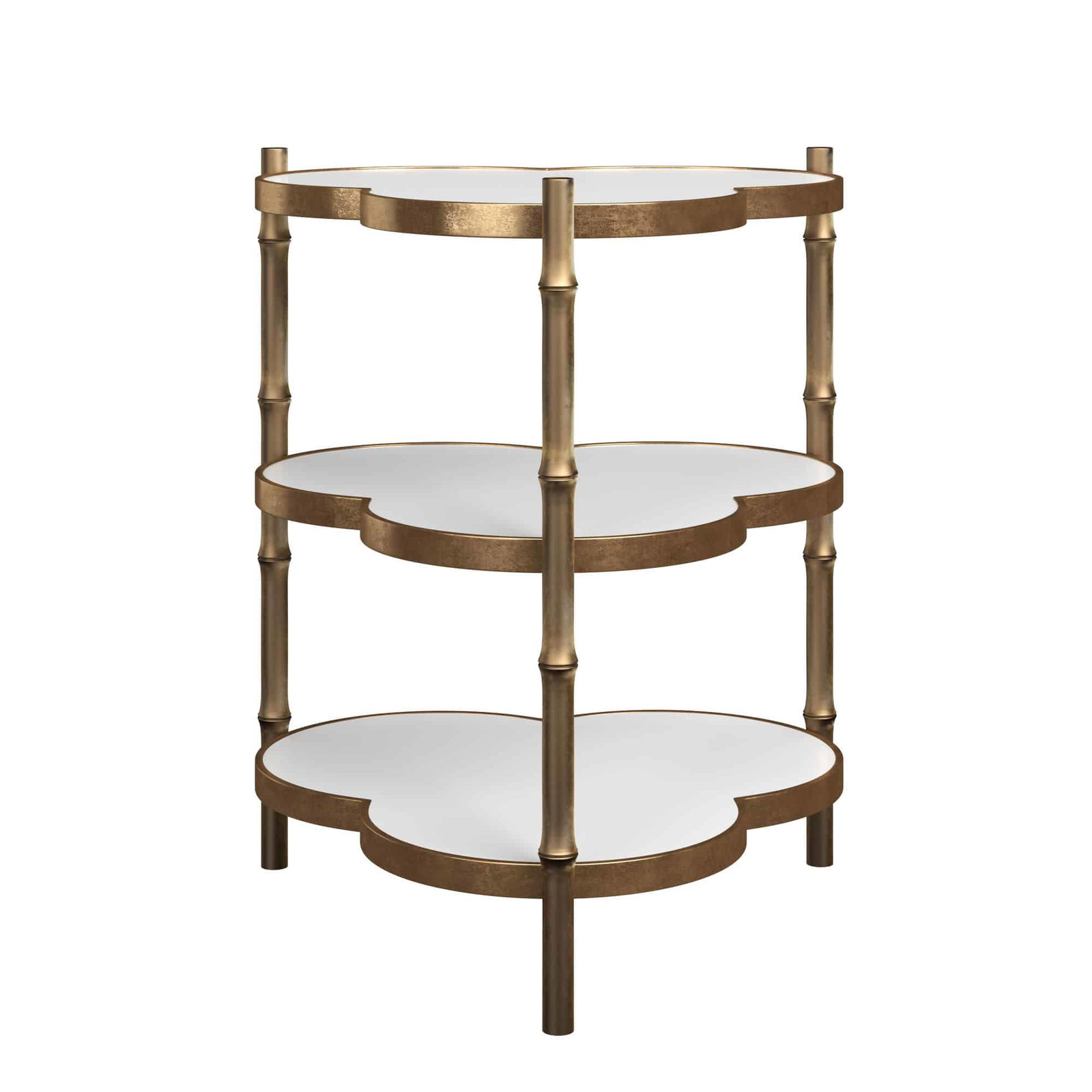 Product Description: ART Furniture 436368-1227 Eave Accent Table - Introduce a touch of whimsical elegance and unique design to your living space with the Eave II Accent Table. This piece, from the esteemed Eave II collection, combines a playful silhouette with sophisticated materials. The table features three tiers, each with a distinct, cloud-like shape, creating a visually captivating display surface. The tabletops are crafted from a smooth, reflective material, adding a touch of glamour and lightness to the design. The frame is constructed from slender, bamboo-inspired metal rods, finished in a warm metallic tone that adds a touch of vintage charm. The Eave II Accent Table is designed to be a statement piece, perfect for displaying decorative items, plants, or serving as a unique side table. Its unique design allows it to seamlessly integrate into a variety of interior styles, adding a touch of personality and artistic flair.
