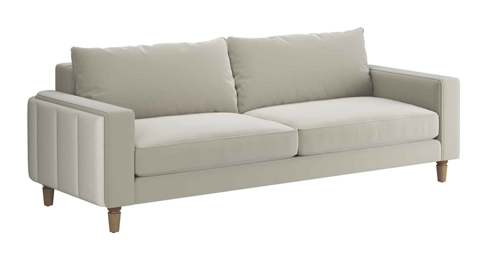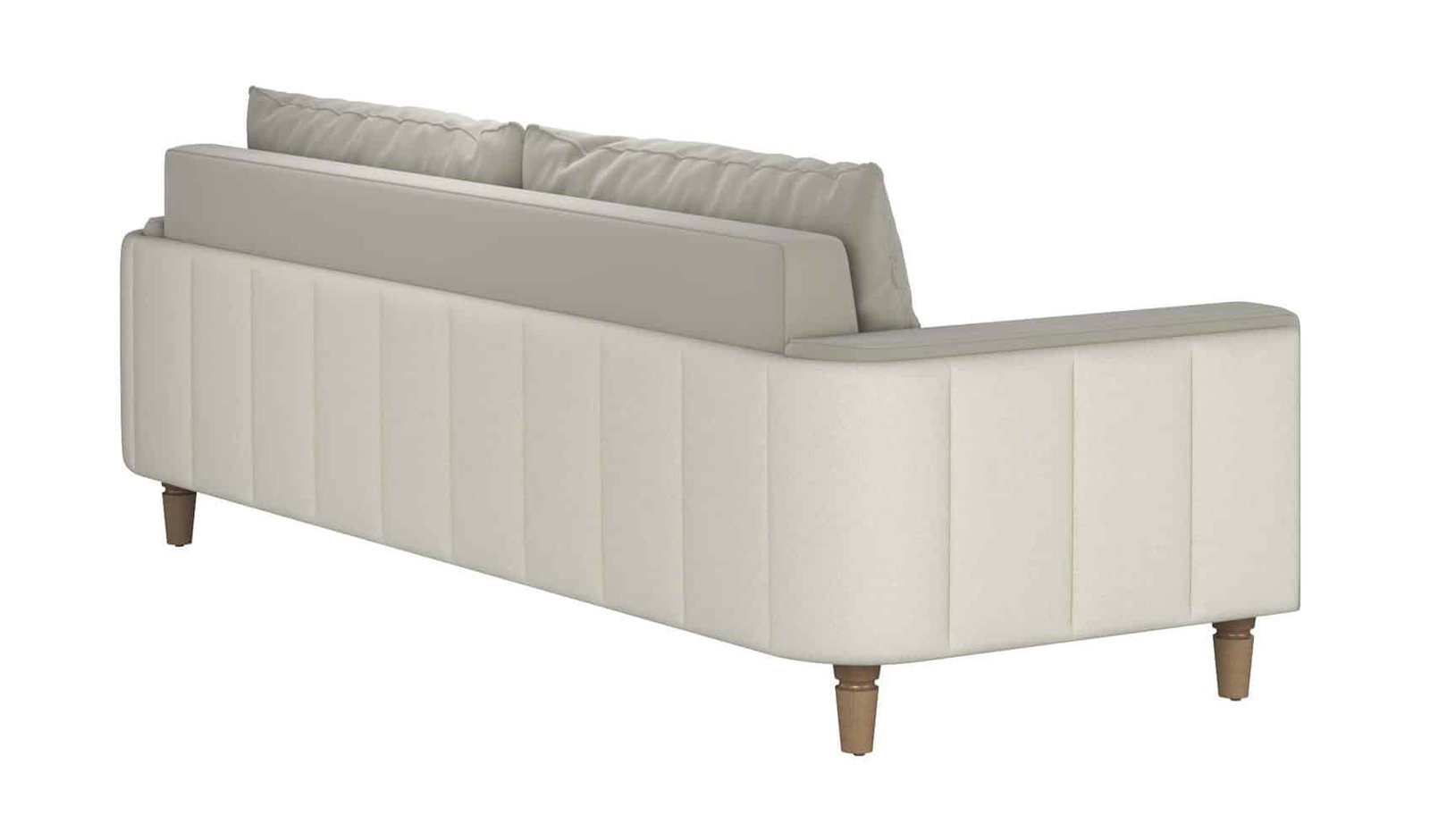 Product Description: ART Furniture 735501-5911 Artisan Barret Sofa - A modern masterpiece, this design features wide, channeled detailing that contrasts beautifully with the sumptuous softness of sand-colored velvet. The sleek track arms enhance the elegance, bringing a refined simplicity to this luxurious piece. It’s a stunning blend of texture and