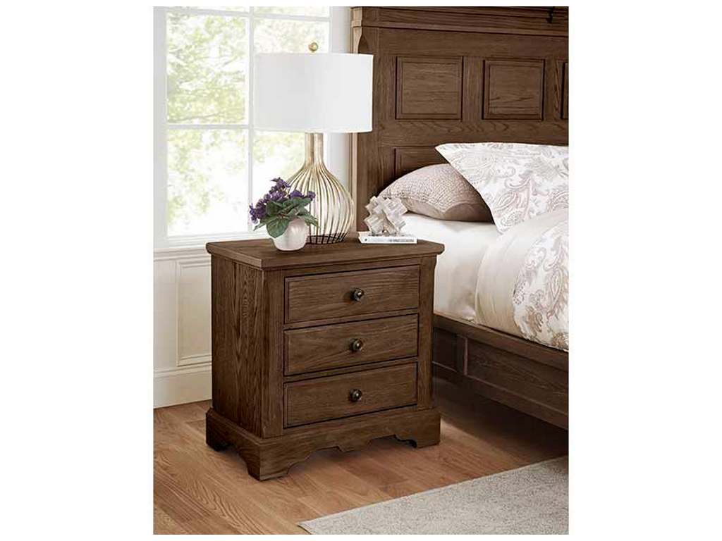 Product Description: Artisan and Post 112-227 Heritage Night Stand 3 Drawer Cobblestone Oak - Three Drawer Night Stand with chamfered pilasters and a decorative base rail. A relaxed traditional style constructed of Solid Oak American-grown hardwood.