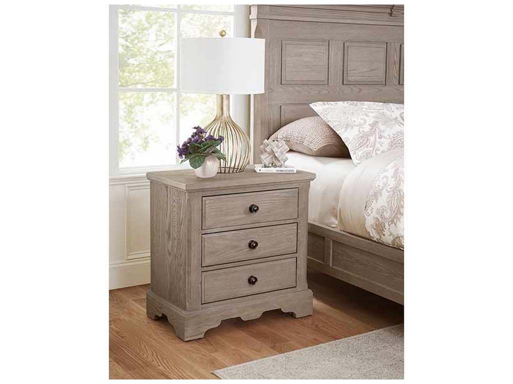 Product Description: Artisan and Post 114-227 Heritage Night Stand 3 Drawer Greystone - Three Drawer Night Stand with chamfered pilasters and a decorative base rail. A relaxed traditional style constructed of Solid Oak American-grown hardwood.