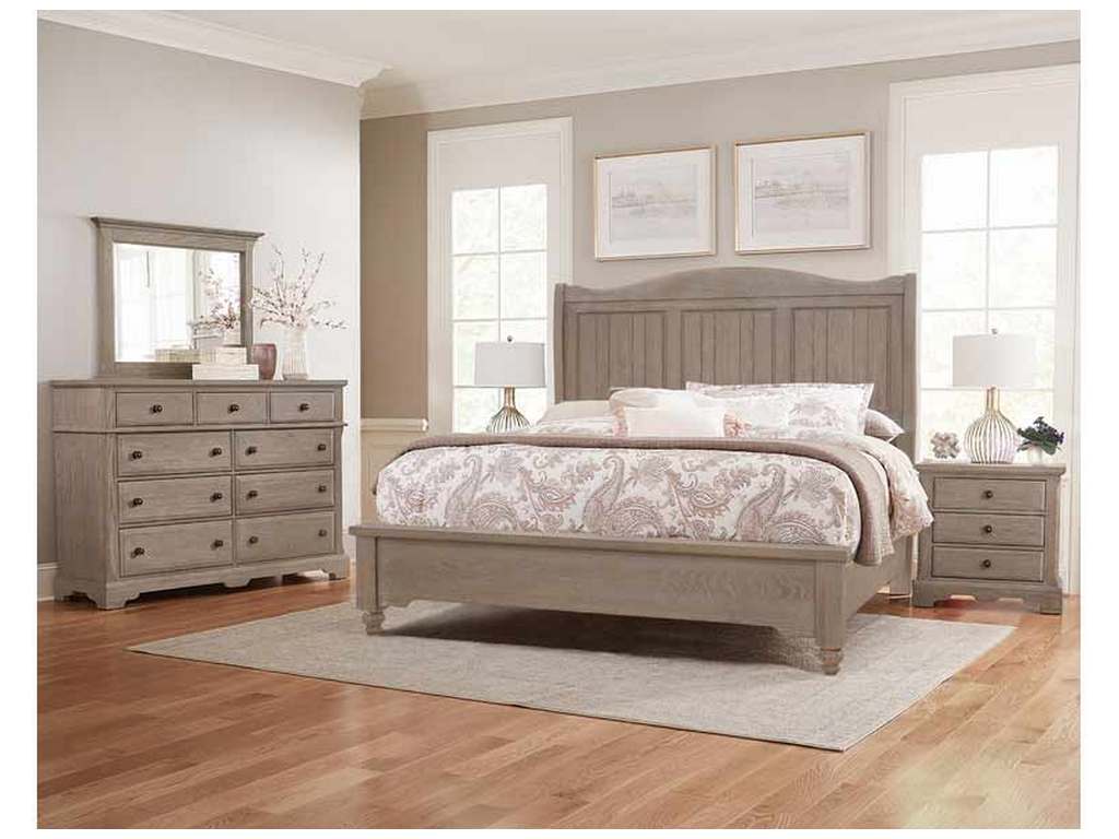 Product Description: Artisan and Post 114-553-155-722 Heritage Queen Sleigh Bed Greystone - Heritage Sleigh Bed. Raised panels with plank board detail. A relaxed traditional style constructed of Solid Cherry American-grown hardwood. Available in Queen, King, and California King.