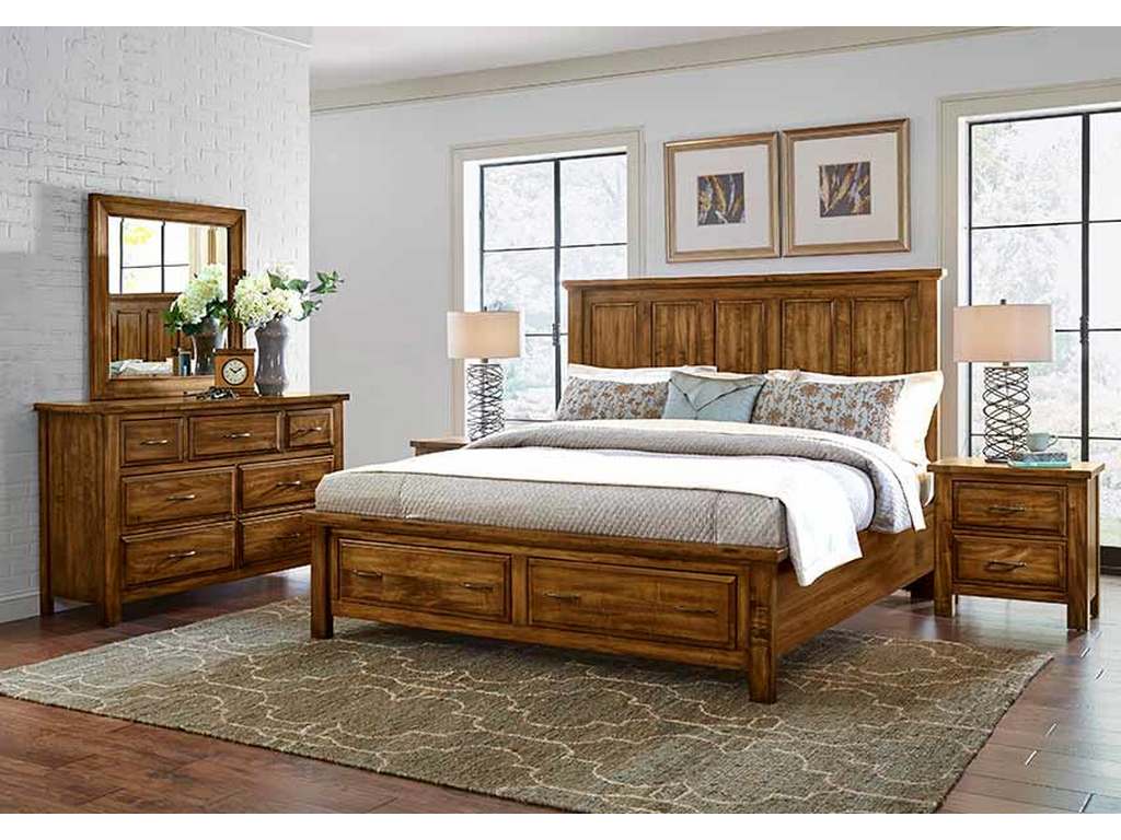Artisan and Post 118-669-066B-502-666T Maple Road King Mansion Bed with Storage Footboard Antique Amish