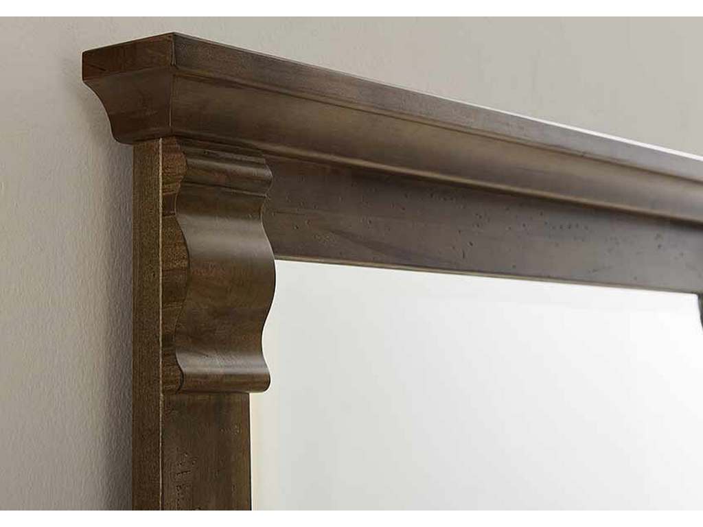 Product Description: Artisan and Post 156-448 Carlisle Corbel Mirror Dark Sable - Complete your bedroom collection by placing this mirror on top of your dresser or chest. Featuring a frame crafted from solid wood and beveled glass; this mirror captures the perfect mix of traditional and rustic style. Earthiness and rich warmth gives the warm natural finish a polished look of authenticity.