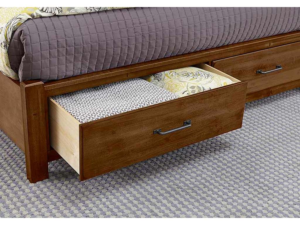 Product Description: Artisan and Post 174-557-050B-502-555T Cool Rustic Queen X Bed with Footboard Storage Amber - Give your bedroom the rustic charm you've been dreaming of with this solid wood bed. The X headboard provide an iconic look that creates an inviting atmosphere you'll relish coming home to night after night. Two drawers in the footboard of the bed offer up plenty of convenient storage for extra bedding or even clothing that you need extra space for. The solid maple construction of the bed allows for you to rest easy knowing that this charming piece will last for years to come.