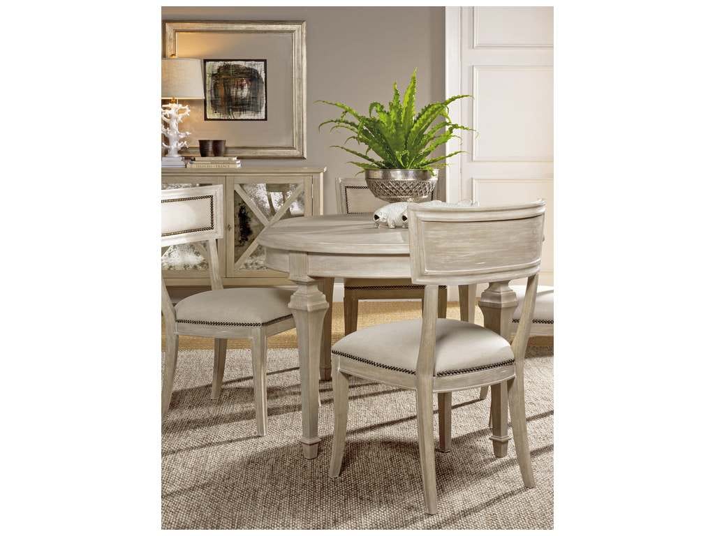 Product Description: Artistica Home 2000-880-40-01 Cohesion Program Aperitif Side Chair - Updated traditional design crafted from Mahogany veneers, bleached Mahogany and select hardwoods. The upholstered seat and back splat are available as shown in a linen and cotton blend with a soft hand in a natural greige coloration, fabric 153671. The decorative nailhead trim is finished in a warm metallic finish with a hint of copper. Available in all Cohesion finishes.