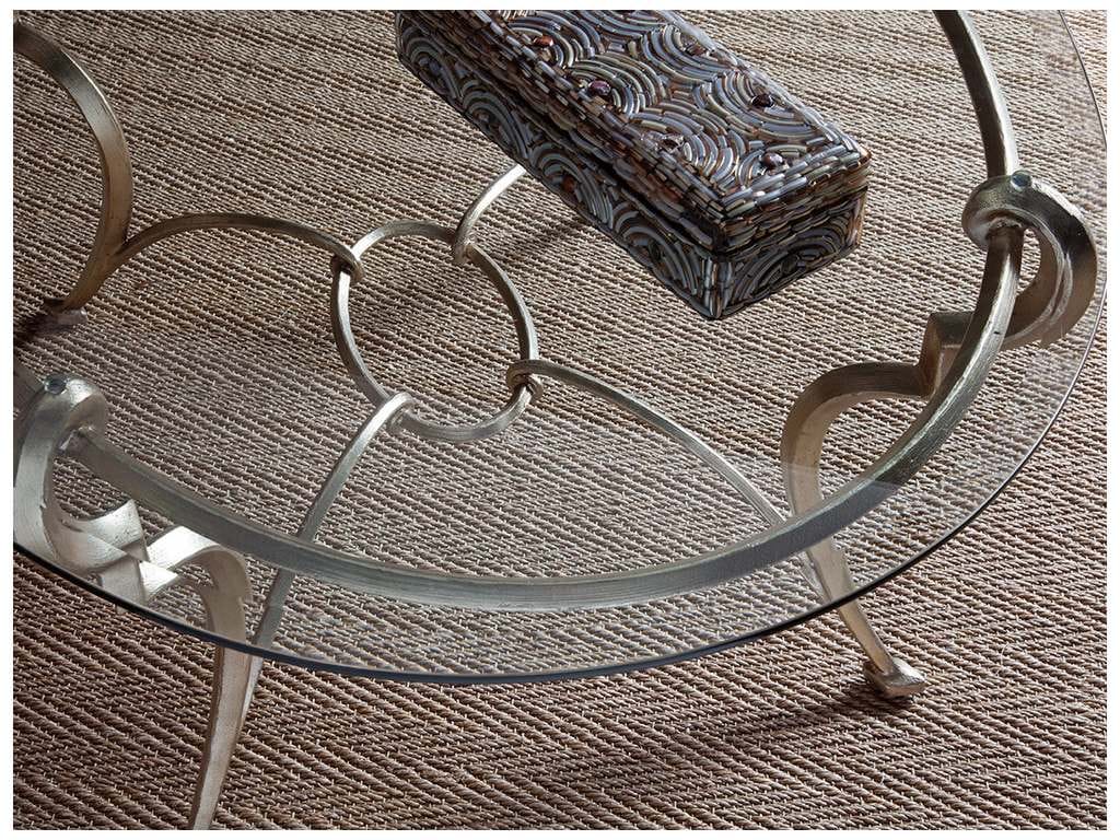 Product Description: Artistica Home 2022-949C Signature Designs Colette Oval Cocktail Table - Italian designs, hand-forged and finished by hand in a champagne foil finish. The tempered glass top has a 1-inch bevel.