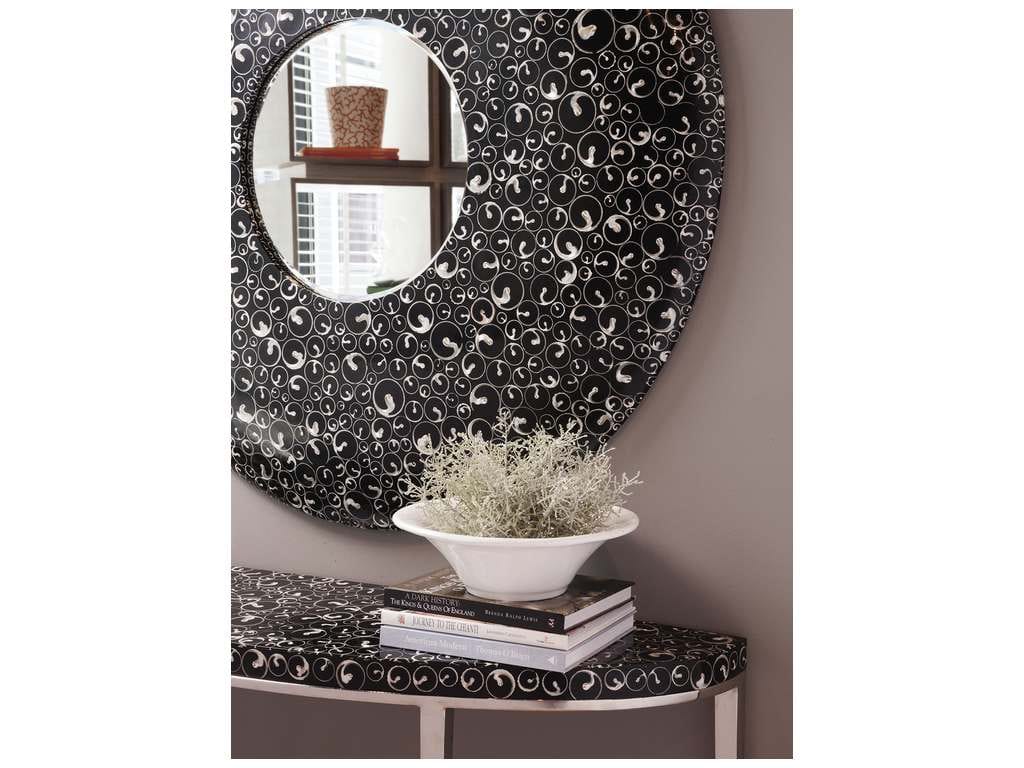 Product Description: Artistica Home 2047-902 Signature Designs Mariana Round Mirror - Sleek contemporary styling crafted from sliced Troca shell, inlaid in polished black resin and coated with a high sheen acrylic.
