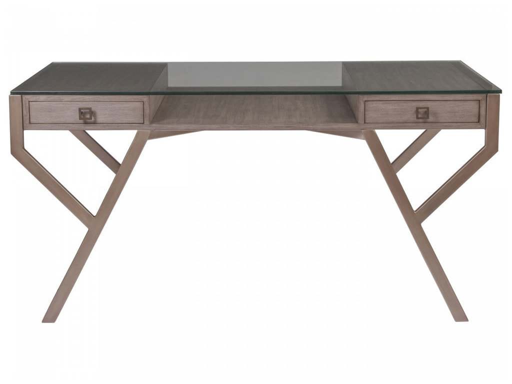 Product Description: Artistica Home 2099-933-41 Cohesion Program Interlaken Desk - Contemporary writing desk crafted from Mahogany solids and veneers with a warm metallic finished frame and hardware and a tempered glass top. The Grigio finish is a warm gray tone with wire brushing.