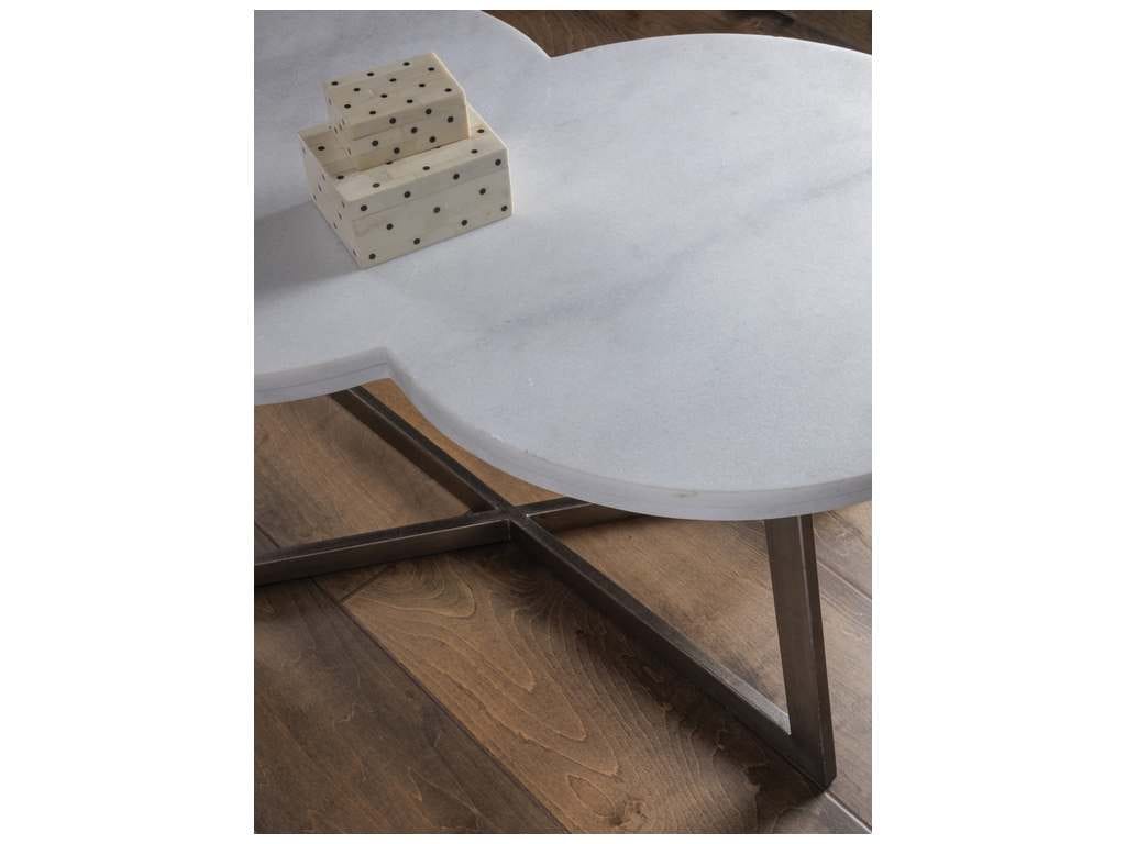 Product Description: Artistica Home 2145-945 Signature Designs Aristo Rectangular Cocktail Table - Whimsical, space age-influenced contemporary design based on clover-like intersecting circles, in Venetian White marble standing on simple iron bases in an antiqued silver leaf. Marble is a product of nature and may vary from piece to piece.
