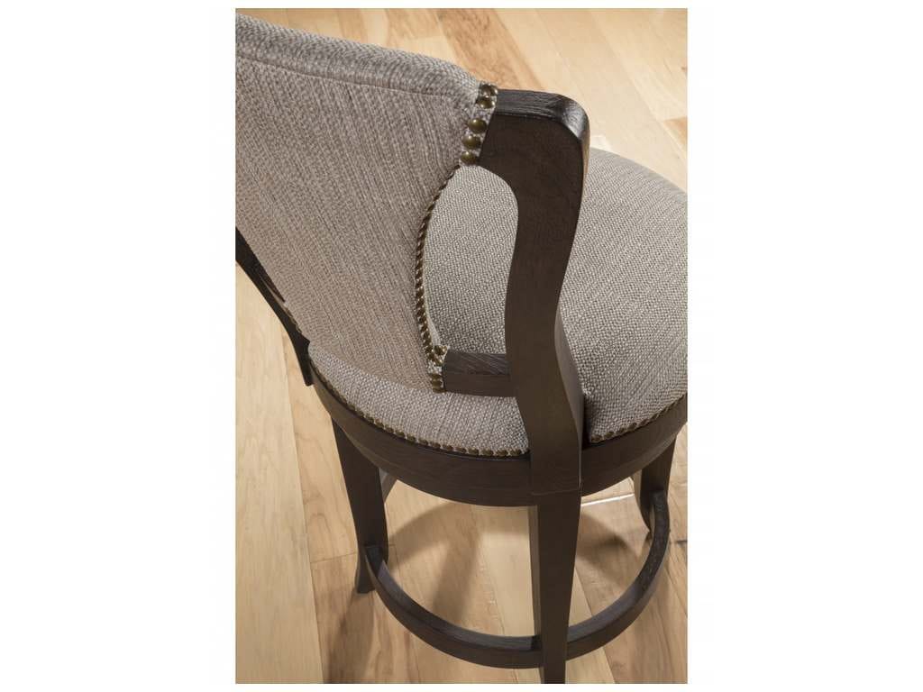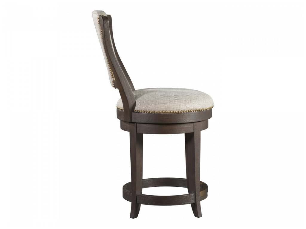 Product Description: Artistica Home 2170-895 Verbatim Verbatim Upholstered Counter Stool - Vintage modern designs in white oak veneers and select hardwoods in a rich brown wire-brushed and cerused finish with 120 degree memory swivel. The upholstered seat and back splat have decorative nailhead trim and metal kickplate in antiqued brass finish. Customize in your choice of COM, fabric, leather, or a combination and choose any of our 7 nailhead finishes. The kickplate will always be antiqued brass finish.