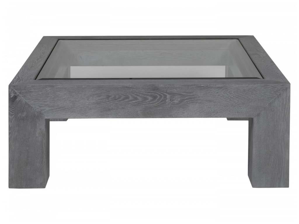 Product Description: Artistica Home 2211-947C Signature Designs Accolade Square Cocktail Table - Heavily distressed and Barnyard Oak veneers in random planks with a waxed carbon finish. The parsons-style cocktail table has concentric stepped detail and a tempered, beveled glass insert into an iron frame.