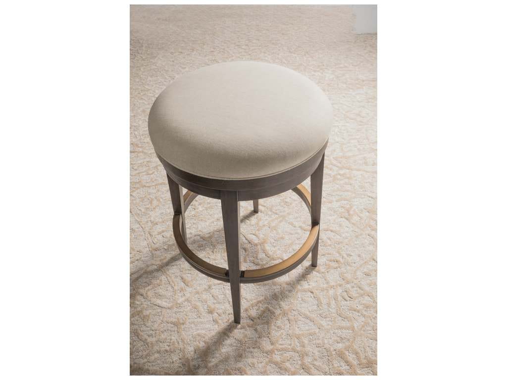 Product Description: Artistica Home 2221-898-41 Cohesion Program Cecile Backless Swivel Bar Stool - Traditional design crafted from mahogany solids and select hardwoods. The backless barstool features a 120 degree memory swivel and includes a warm metallic kickplate with a hint of copper in all quandrants. The standard fabric 153671 is a linen and cotton blend with a soft hand in a natural greige coloration. The finish is Grigio with wire brushing.