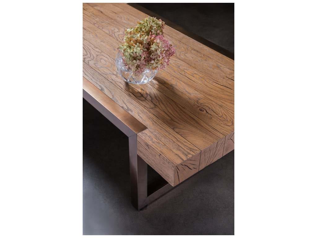Product Description: Artistica Home 2241-945 Signature Designs Canto Rectangular Cocktail Table - Modern Organic designs crafted from 5mm sawn French Oak veneers and select hardwoods in a honey brown finish with an aluminum base in a bronze finish.