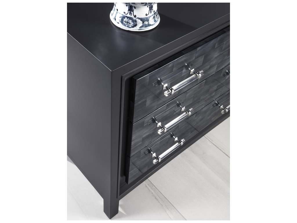Product Description: Artistica Home 2268-973 Signature Designs Elation Gray Hall Chest - Faux horn motif hand-painted by artists on individual resin tiles in a dark gray bone coloration with custom acrylic hardware and bright nickel finished clasps which are located on each of the three drawers. Faux horn tiles will vary in appearance and coloration from piece to piece.