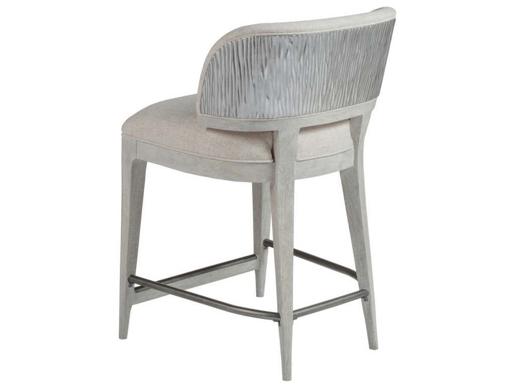 Product Description: Artistica Home 2326-895 Signature Designs Olivia Counter Stool - A contemporary upholstered counter stool that is perfect for any room. The back of the bar stool has a unique silver leaf finish that is sure to catch the eye of any guests. The upholstered back splat and memory swivel seat are available as shown in a linen and cotton blend with a soft hand in a natural greige coloration, fabric 153671.