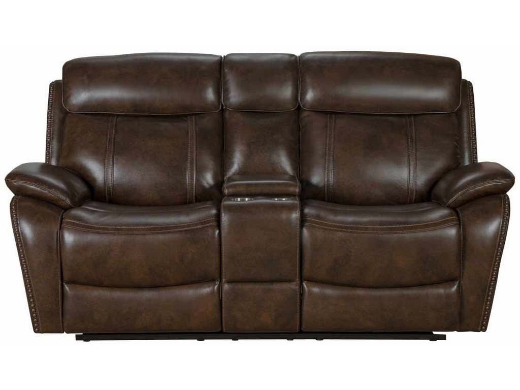 Product Description: BarcaLounger 24PH-3703-3713-86 Sandover Power Recline Loveseat Tri Tone Chocolate - Casual transitional triple power reclining group with power recline, power headrest and power lumbar. This group features pad over chaise bucket seating with pocketed coil springs, hidden drop down center table with 2 cup holders, flared track pillow arms accented with nail head trim, and plush 42.5" high pub back with strap detail. Power button have USB ports to keep your devices charged. Console loveseat has center storage plus 2 USB port and 2 electrical outlets and 2 stainless steel cups holder. Matching recliner available.