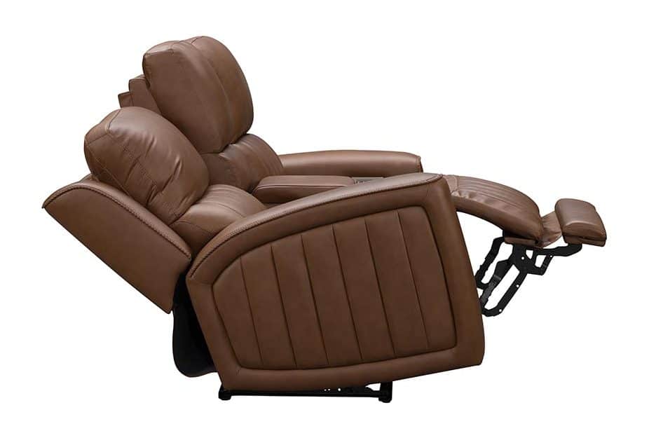 Product Description: BarcaLounger 24PHL-1303-3761-84 Pierce Transitional Power Reclining Loveseat with Storage Console - Sporty styling is found in this sophisticated modern reclining group. Features winged split pub channeled back with power headrest, power lumbar and drop-down table with 2 cup holders. Channeled pad over chaise pocketed coil seating fully supports your legs by eliminating pressure points. Large track arms with decorative whip stitching and welt details. Inside the arm power controller for easy access with USB port.