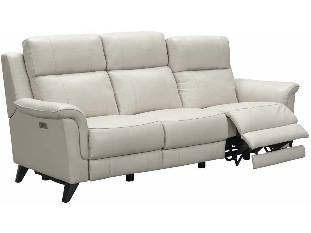 Product Description: BarcaLounger 39PH-3716-3726-82 Kester Power Recline Sofa Laurel Cream - Mid-century modern elevated reclining sofa group with power recline and power headrest. This group features box seat styled pad over chaise seating with pocketed coil springs, tucked pillow arms, and clean line pub backs. Power buttons have USB ports to keep your devices charged. Matching loveseat and recliner available. Legs are finished in a dark teak color.