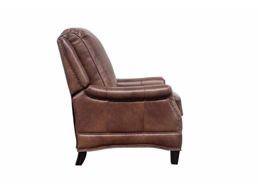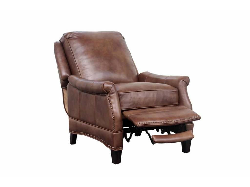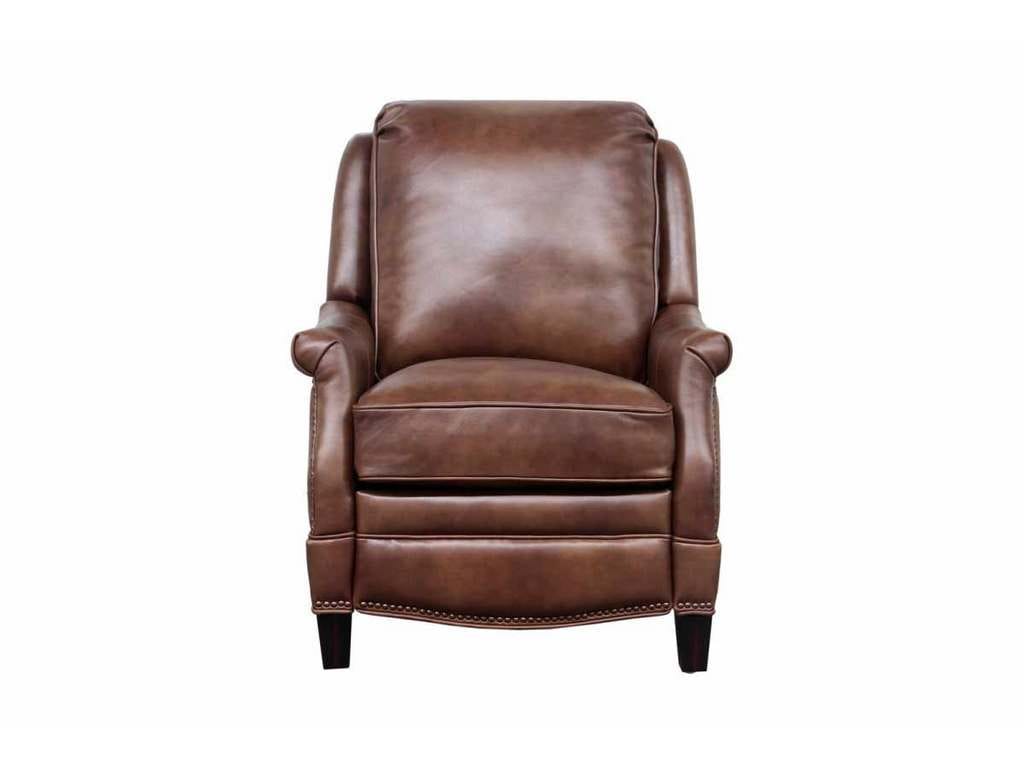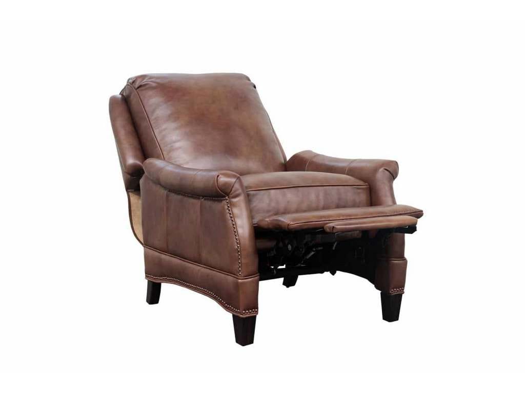 Product Description: BarcaLounger 7-3056-5702-85 Ashebrooke Low Leg Recliner Wenlock Tawny - Smaller scale push thru the arms 3-way recliner with footrest extension, flared rolled arms, nail head trim on the shaped lower side rails and ottoman. Attached back cushion. Welted loose box seat cushion with pocketed coil springs and a down blend feather topper. Merlot finished tapered wood legs.