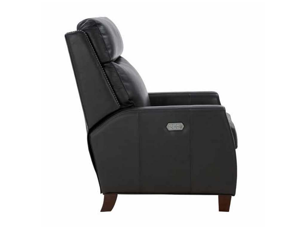 Product Description: BarcaLounger 9PHL-3687-5700-95 Anaheim Power Recline Shoreham Gray - Barcalounger 9PHL-3687 5700-95 Anaheim Power Recline Shoreham Gray - Triple low leg recliner. 44.9" high pub back design, loose welted box seat cushion with pocketed coil springs encased in foam, wrapped in Dacron with a feather blend topper, footrest extension, nail head trim accents, and tapered wood legs finished in a warm mahogany finish. This chair was designed for people over 6'