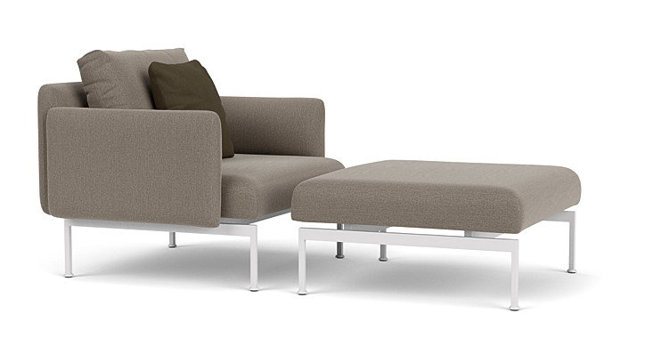 The Layout collection of modular deep seating offers many possibilities. Upholstered backs and arms are separate units that can fit on any side of the seating units to create sofas, corner sectionals, loungers, chairs, ottomans and many asymmetric configurations. Designed by award-winning international designers Andrew Jones and Nathalie de Leval. The collection comprises two sizes of upholstered seats and five tables, making intimate or grand seating groups possible. The refined frames are made from 316 marine-grade powder-coated stainless steel, available in two colors. The Layout dining collection combines refined 316 marine-grade powder-coated stainless steel frames with teak seats and tabletops. Layout dining complements Layout Deep Seating perfectly.
