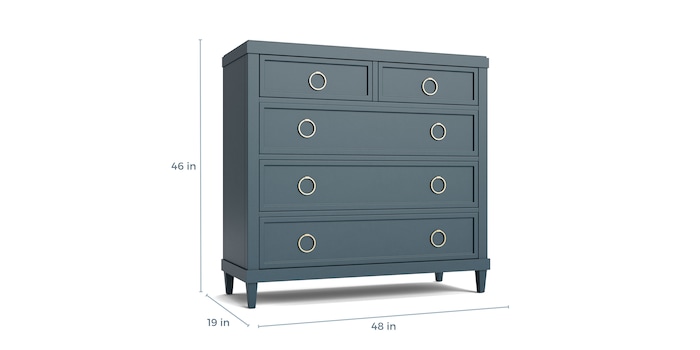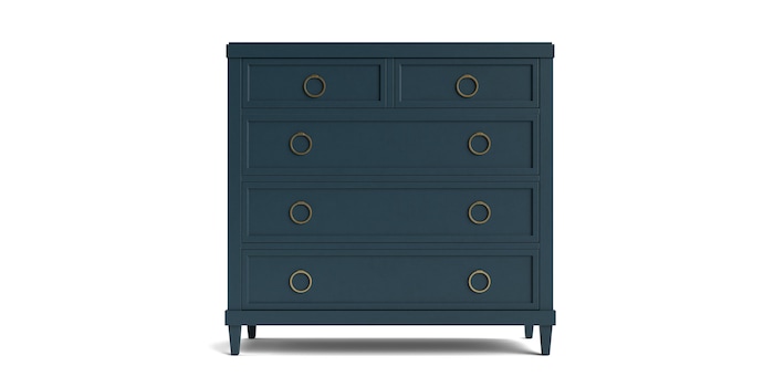 Product Description: Bassett Furniture 2468-0251Z Ventura Colors Chest - Perfectly scaled for bedrooms large or small, the Ventura Colors Chest by Bassett blends architectural character with modern classic design. Its five drawers rise on tapered legs beneath a crown-molded top, providing refined storage for clothing or linens. Knotty elm veneers over poplar solids are finished in your choice of semi-opaque colors that enhance the wood’s natural character. Customize the look with ring pulls available in Satin Brass, Satin Nickel, or Gunmetal. The bottom drawer features a cedar lining. Available in 6 finishes.